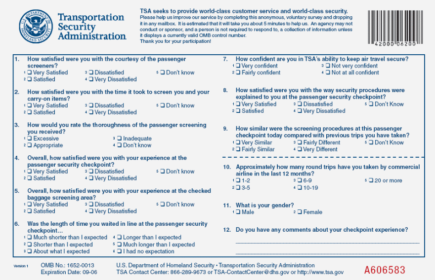 Form TSA form 409 TSA form 409 Airport Intercept Survey