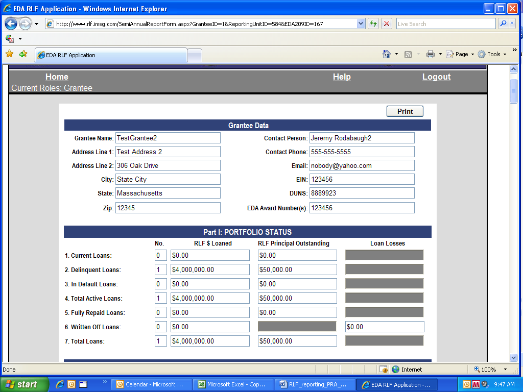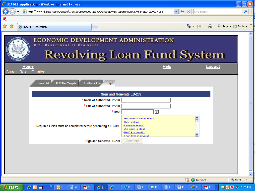Revolving Loan Fund Management System (RLFMS) Grantee Data Entry Screens
