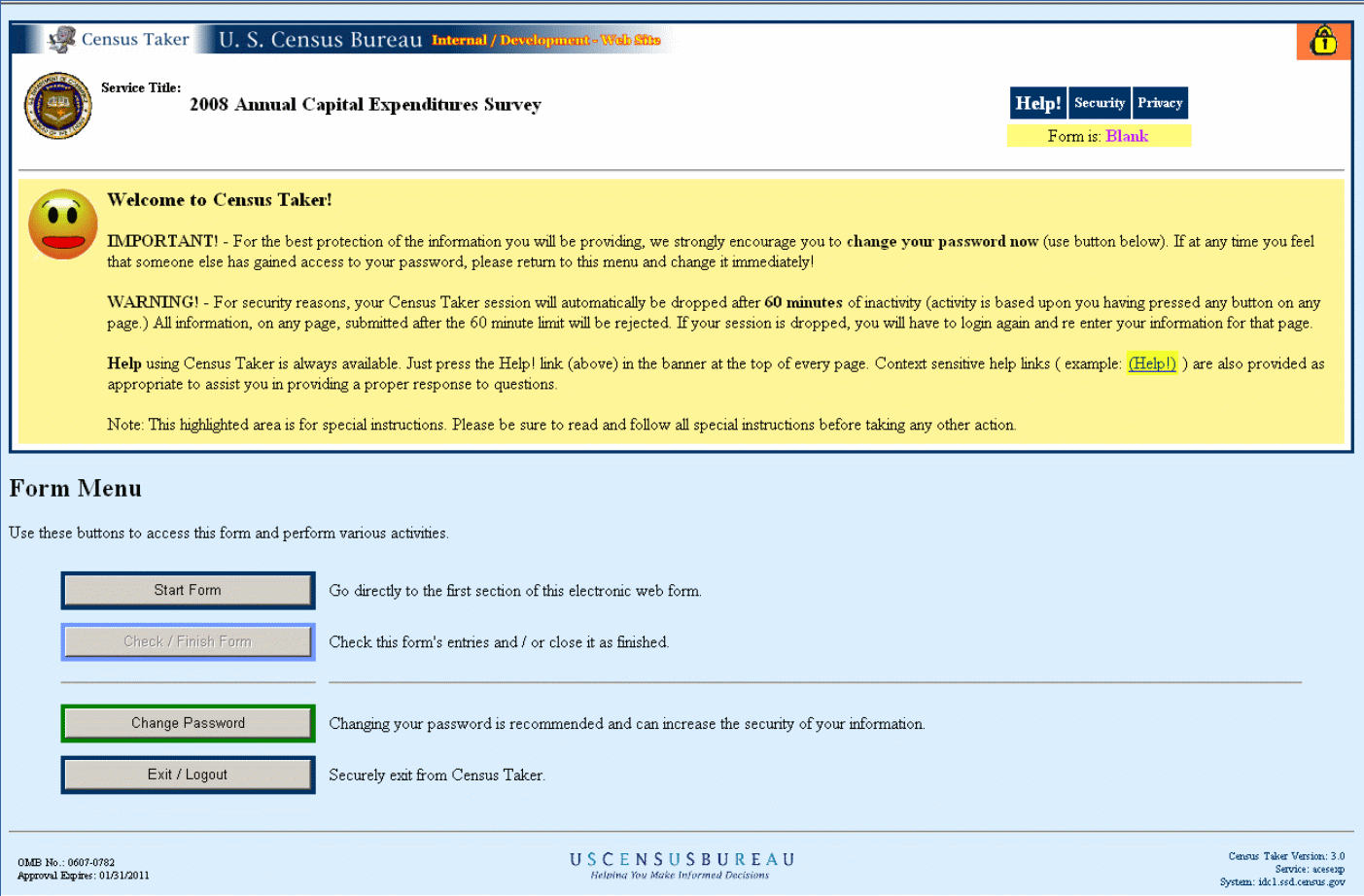 Note: The operational screens for the ICT survey are identical to the ones shown above for the ACES survey.