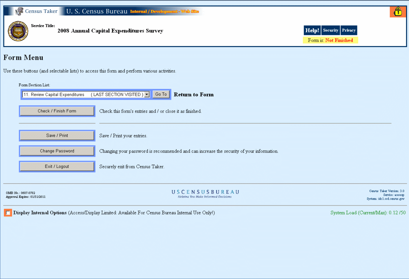 Note: The operational screens for the ICT survey are identical to the ones shown above for the ACES survey.