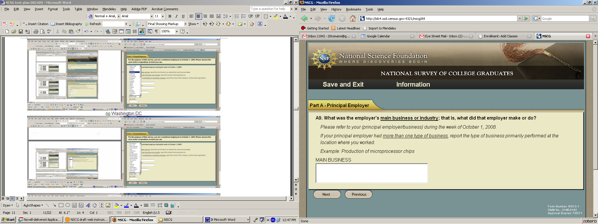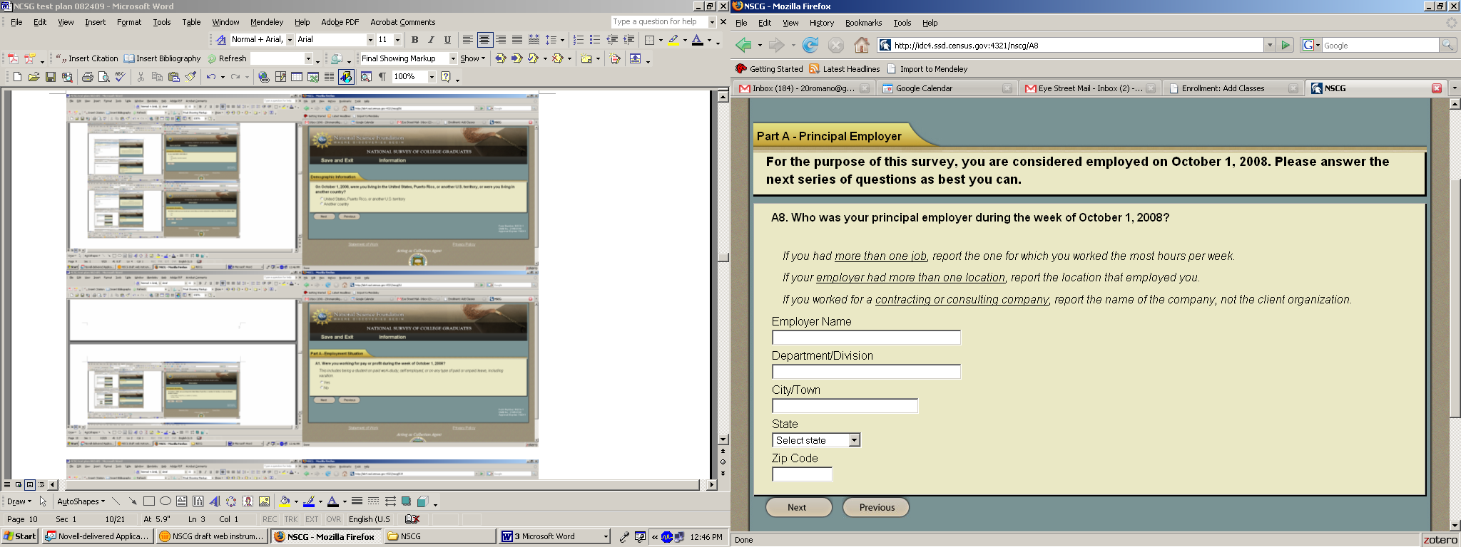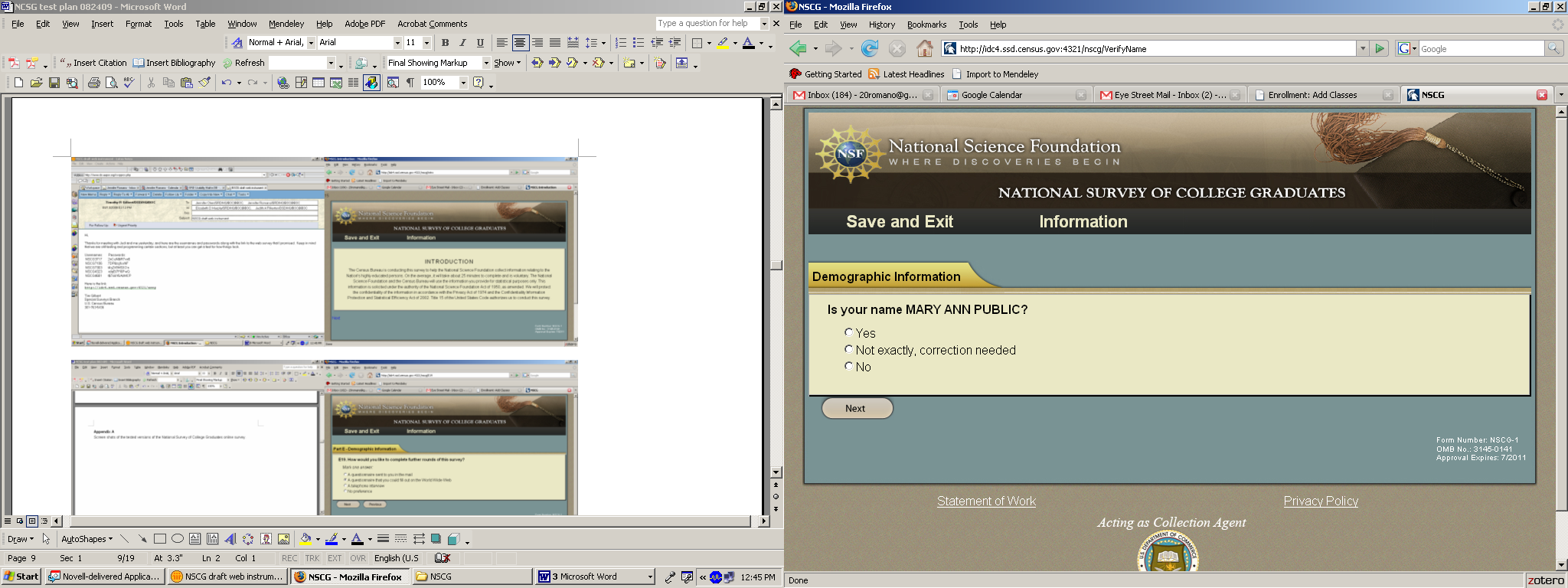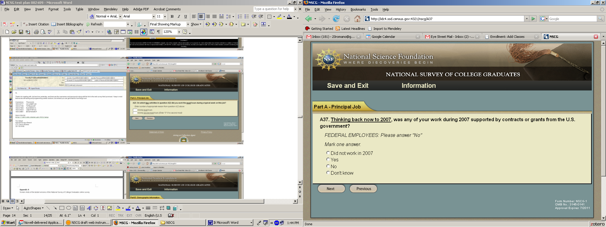 Preliminary screenshots of the NSCG online survey that will be tested in this usability study.