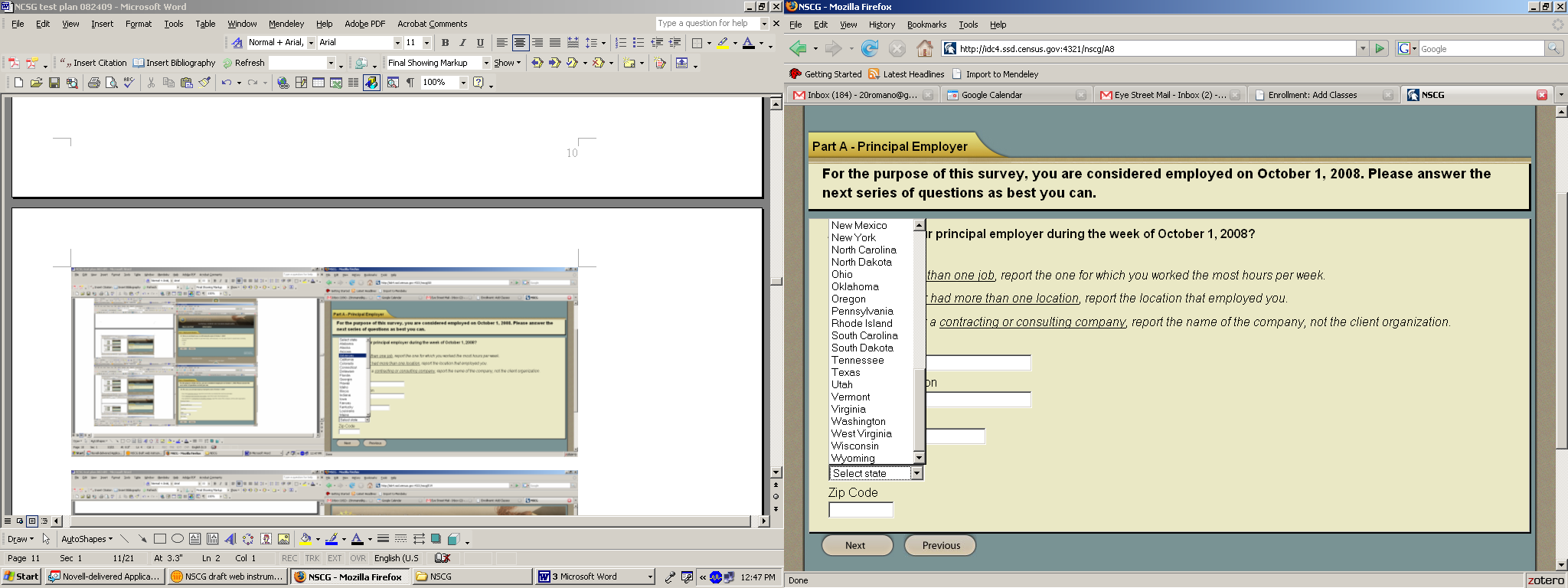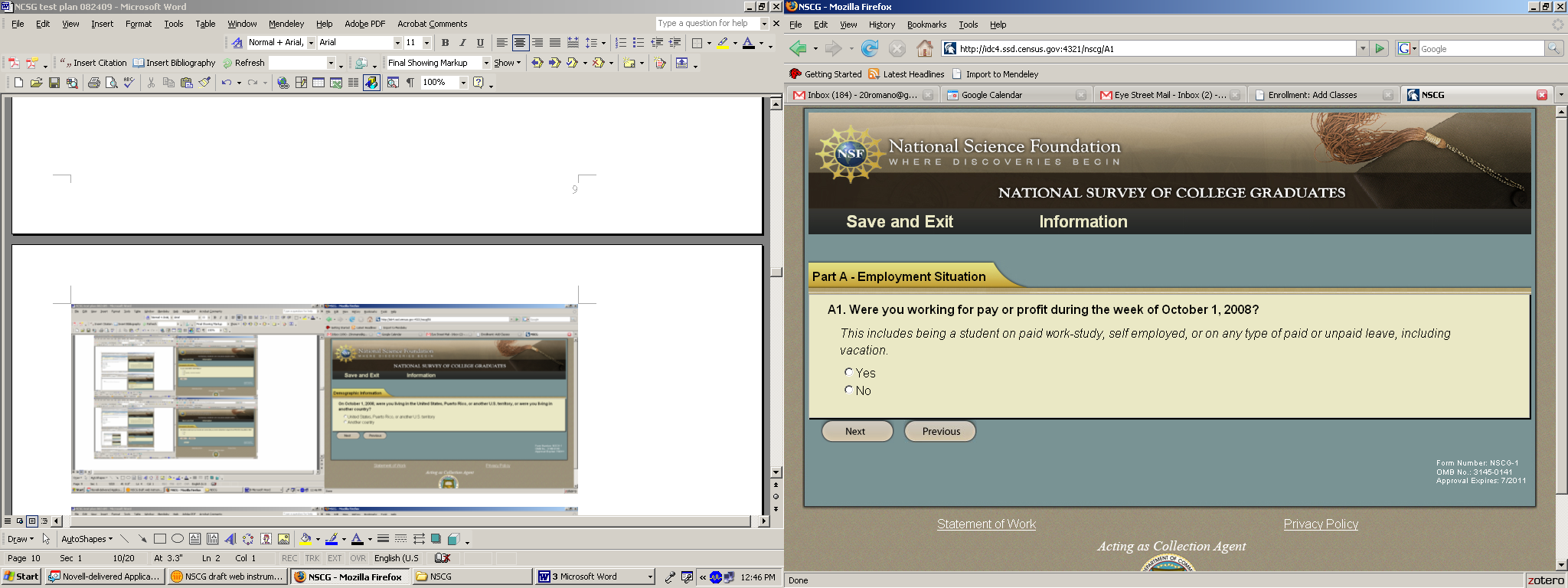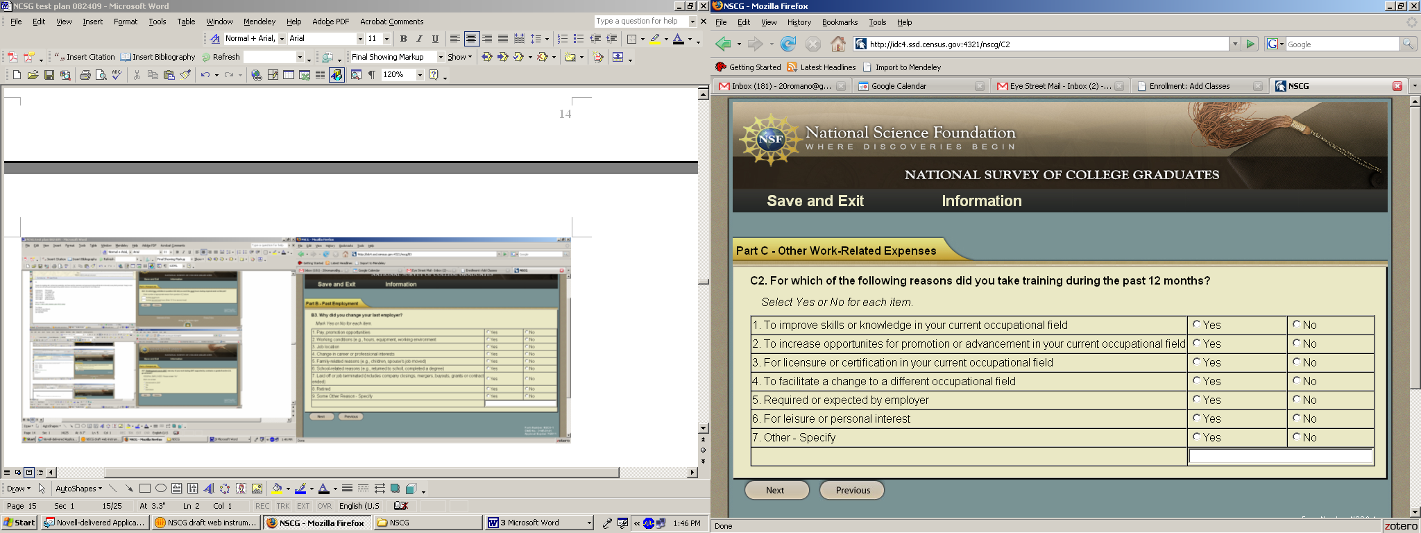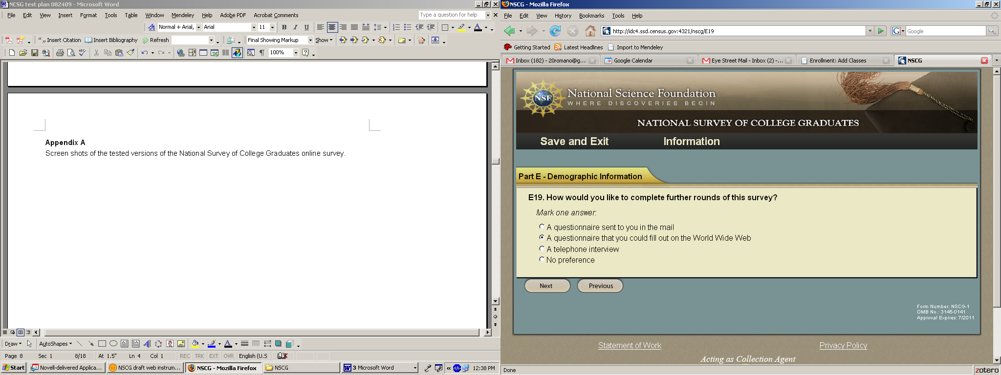Preliminary screenshots of the NSCG online survey that will be tested in this usability study.