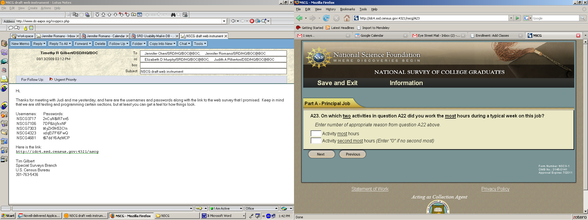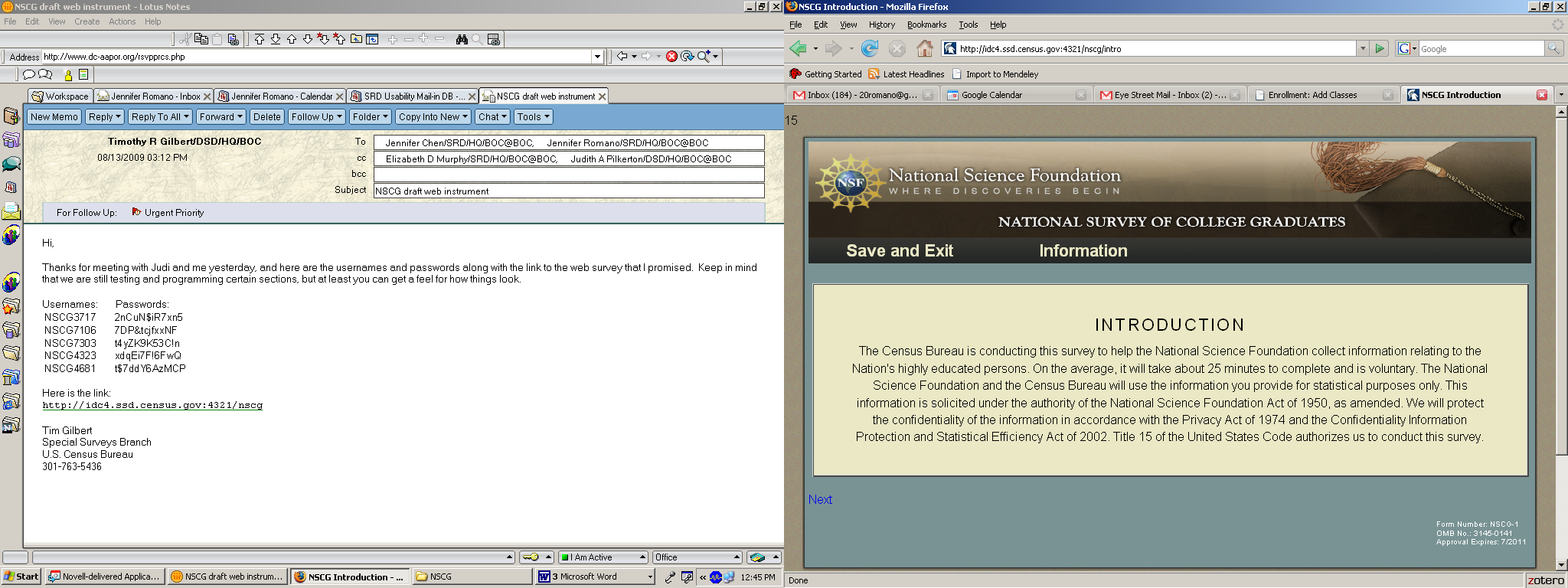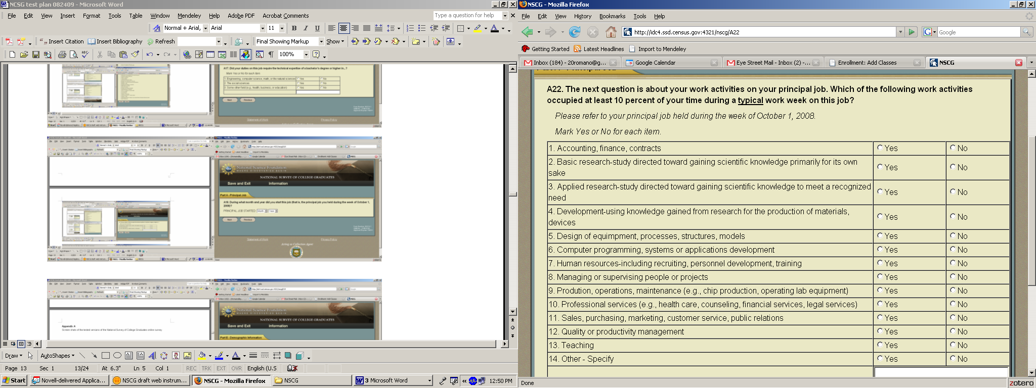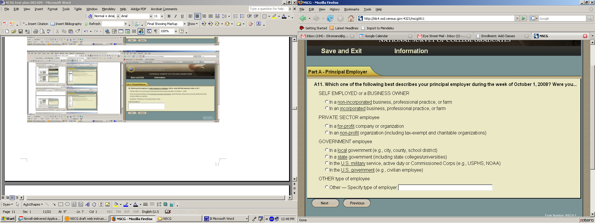 Preliminary screenshots of the NSCG online survey that will be tested in this usability study.