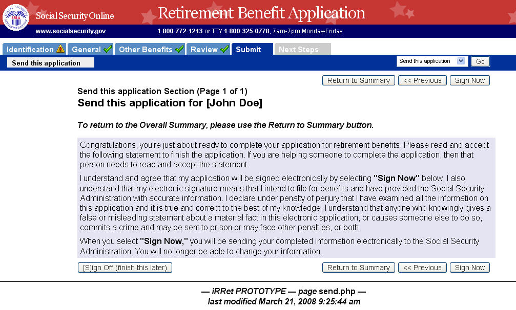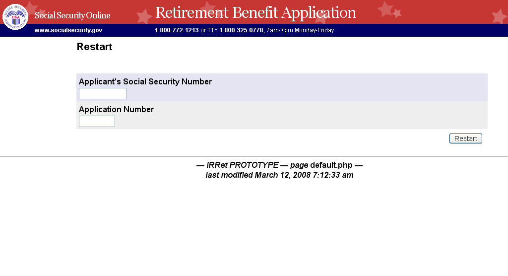 1.6restart page (will be shown to users accessing the retirement estimator from the when to start benefits page and then returing to the application and to users who select “continue application” on the welcome page)