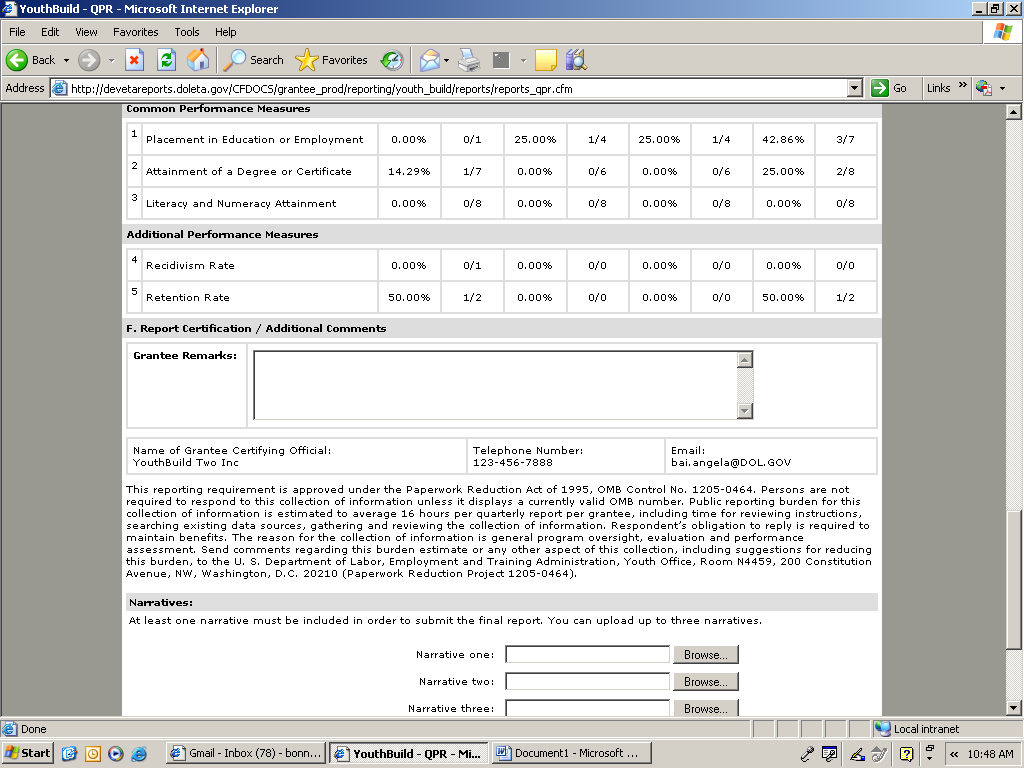 ETA 9036 Yourhbuild Quarterly Performance and Narrative Reports S