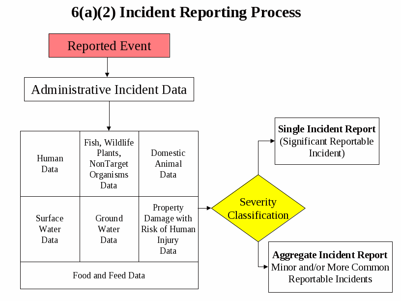 The single incident forms are divided into two specific areas. The first area describes “administrative data” or general demographic and product information that is gathered for any incident. There are seven supplemental addenda relating to the seven incident types i.e., human, domestic animal, fish/wildlife/plant/other non-target organisms, groundwater, surface water, food and feed, and property damage with risk of human injury. After collecting the information and the severity classification is determined, the Registrant can then ascertain whether the incident must be reported individually or in aggregate. If the incident must be reported individually the single incident forms can be used to submit the information directly. If the incident must be reported in aggregate certain information must be transferred to the aggregate report form and submitted in that manner.