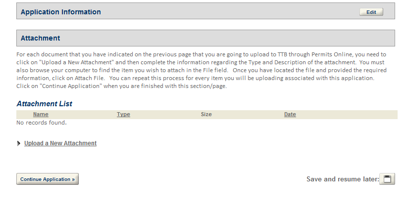 Create a New Application: Penalty of Perjury/TTB WARNING