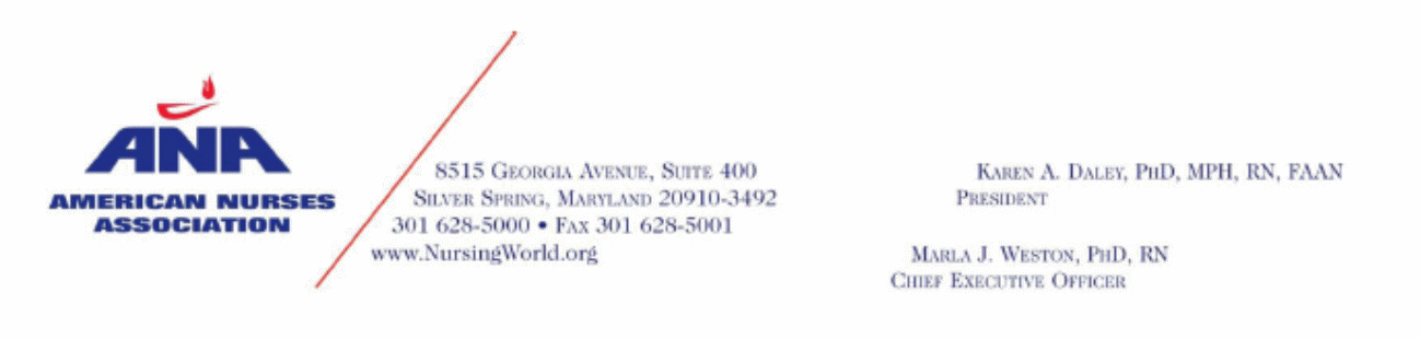 We appreciate the opportunity to comment on this important rule. If we can be of further assistance, or if you have any questions or comments, please feel free to contact either Peter McMenamin, Ph.D., Senior Policy Fellow, Department of Nursing Practice and Policy at peter.mcmenamin@ana.org or 301-628-5073 or Eileen Carlson, RN, JD, Associate Director, ANA Government Affairs at eileen.carlson@ana.org or 301-628-5093.