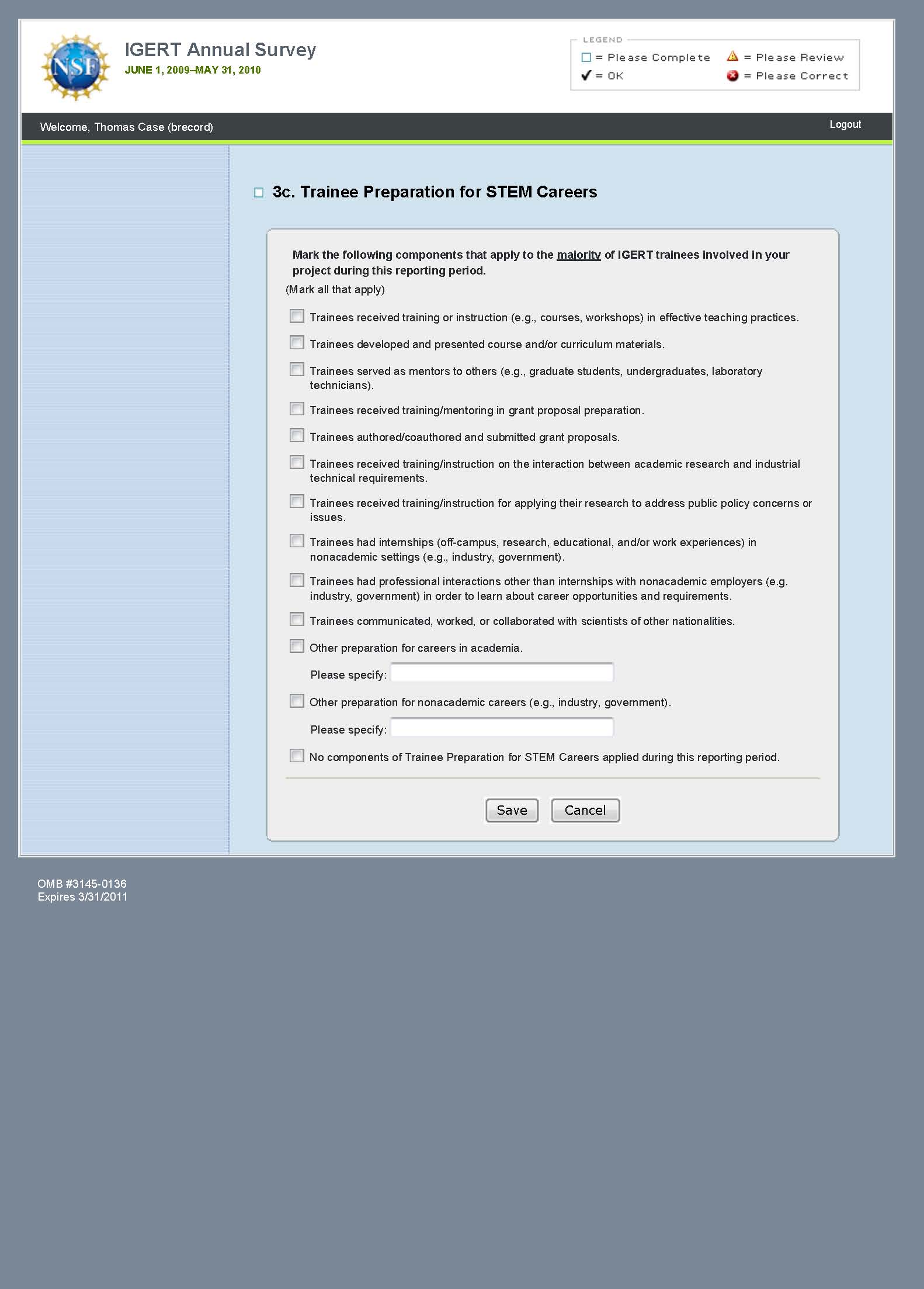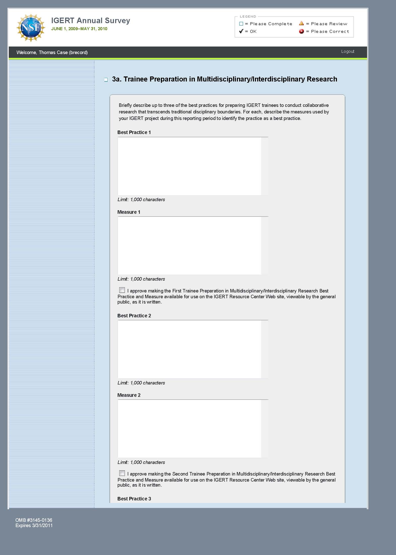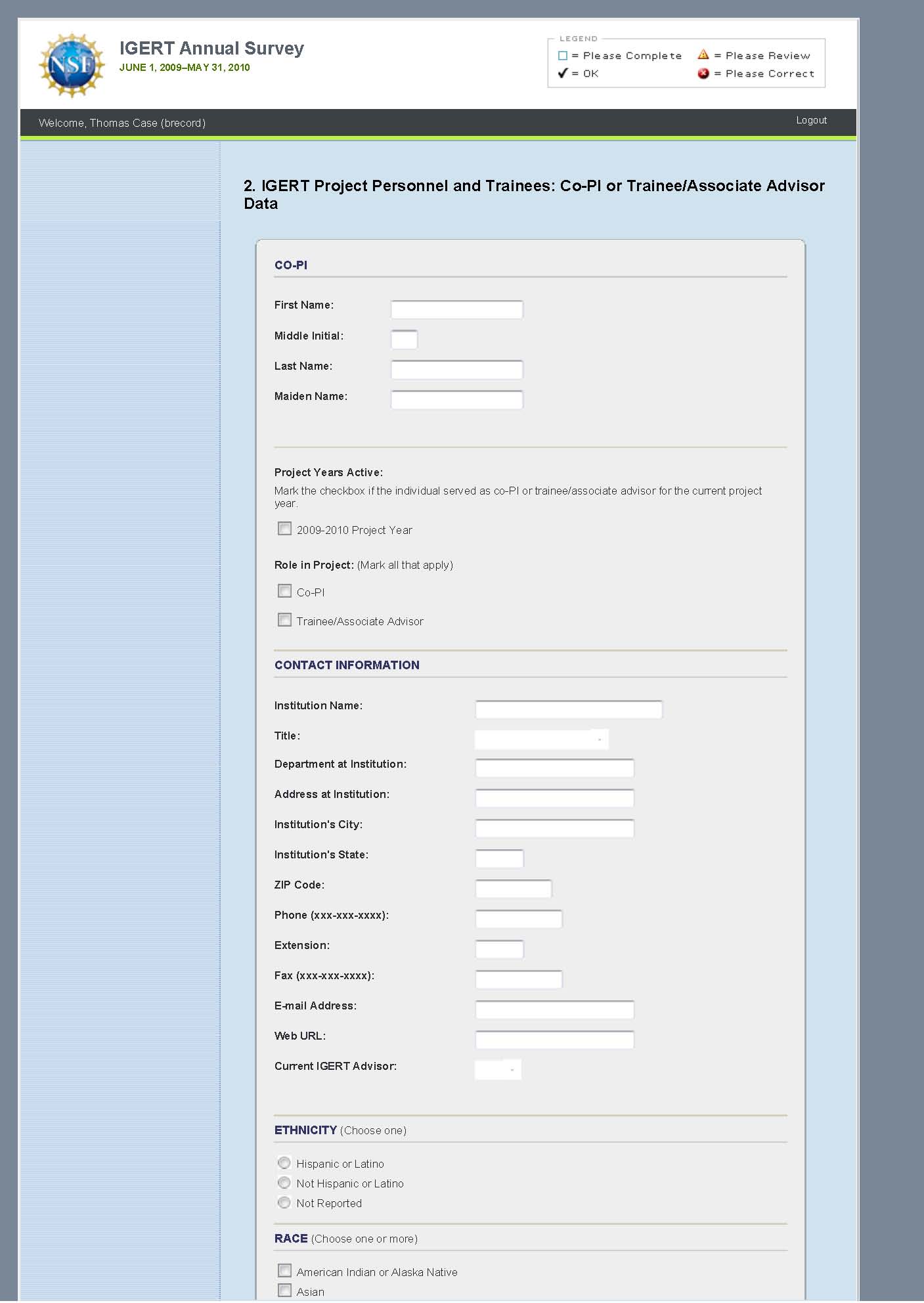 Integrative Graduate Education and Research Traineeship Program Monitoring System (IGERT) - PI