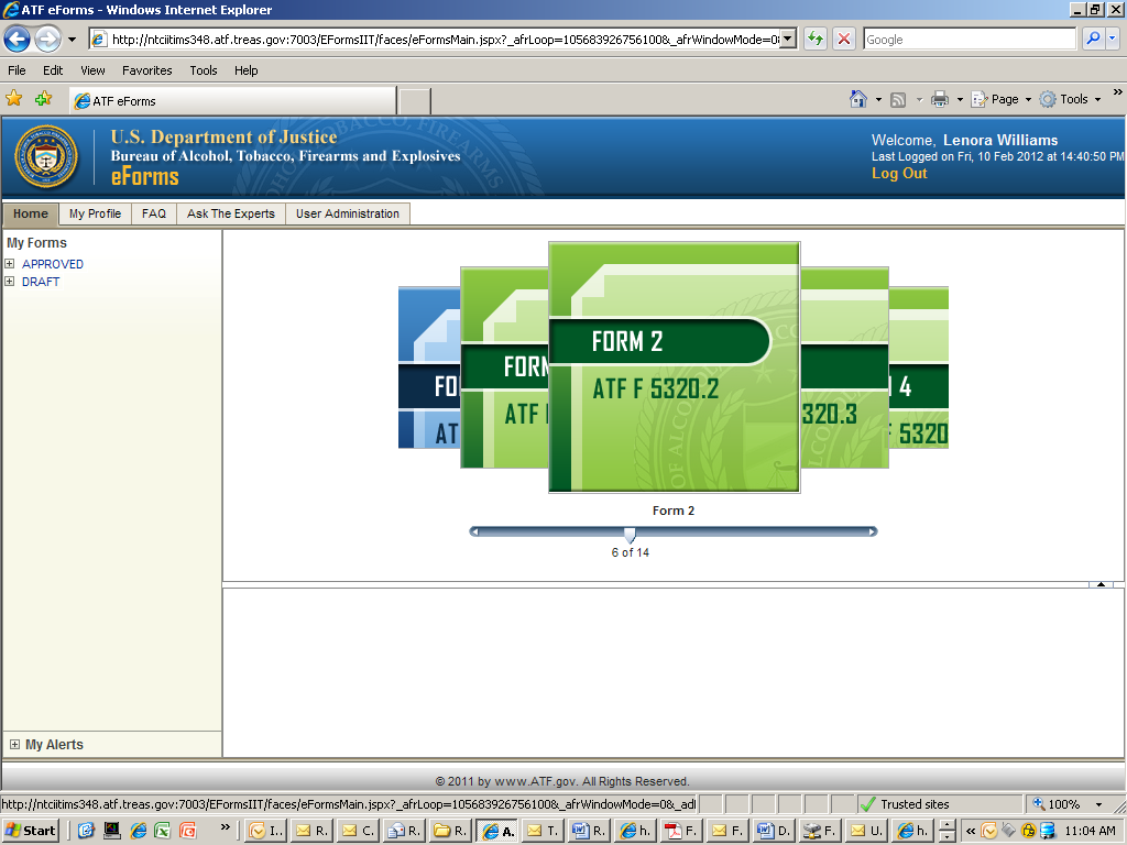 Once the user selects the form from the carousel they begin to complete a series of screen based on the forms that they have selected. Once the pages have been completed the applicant will submit the form electronically to ATF. The system will generate a completed pdf of the OMB approved form that was selected.