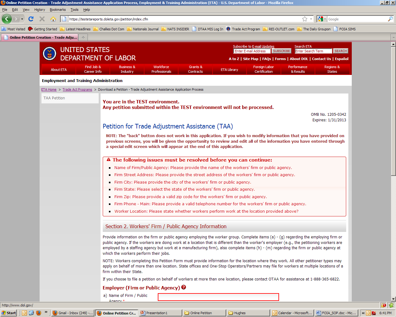 Form ETA-9142A-1 TAA ON-Line Petition
