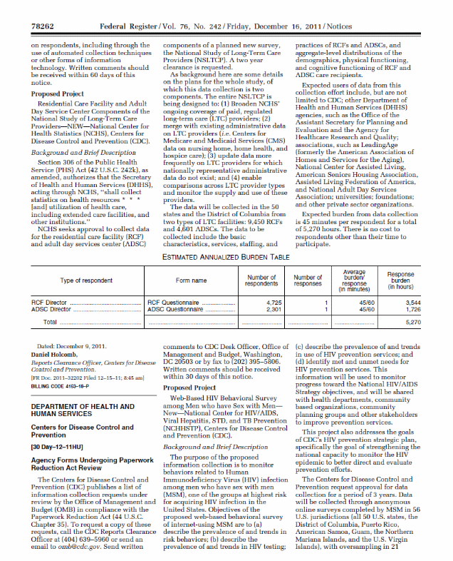 Data Collection for the Residential Care Community and Adult Day Services Center Components of the National Study of Long-term Care Providers