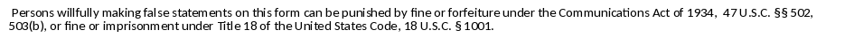 | I certify that (Name of Agent)_______________________________________________________ is authorized to submit the information reported on behalf of the reporting carrier. I also certify that I am an officer or employee of the reporting carrier; my responsibilities include ensuring the compliance with 47 CFR §54.1009(a)(4) as reported to the authorized agent; and, to the best of my knowledge, the certification provided to the authorized agent is accurate. |