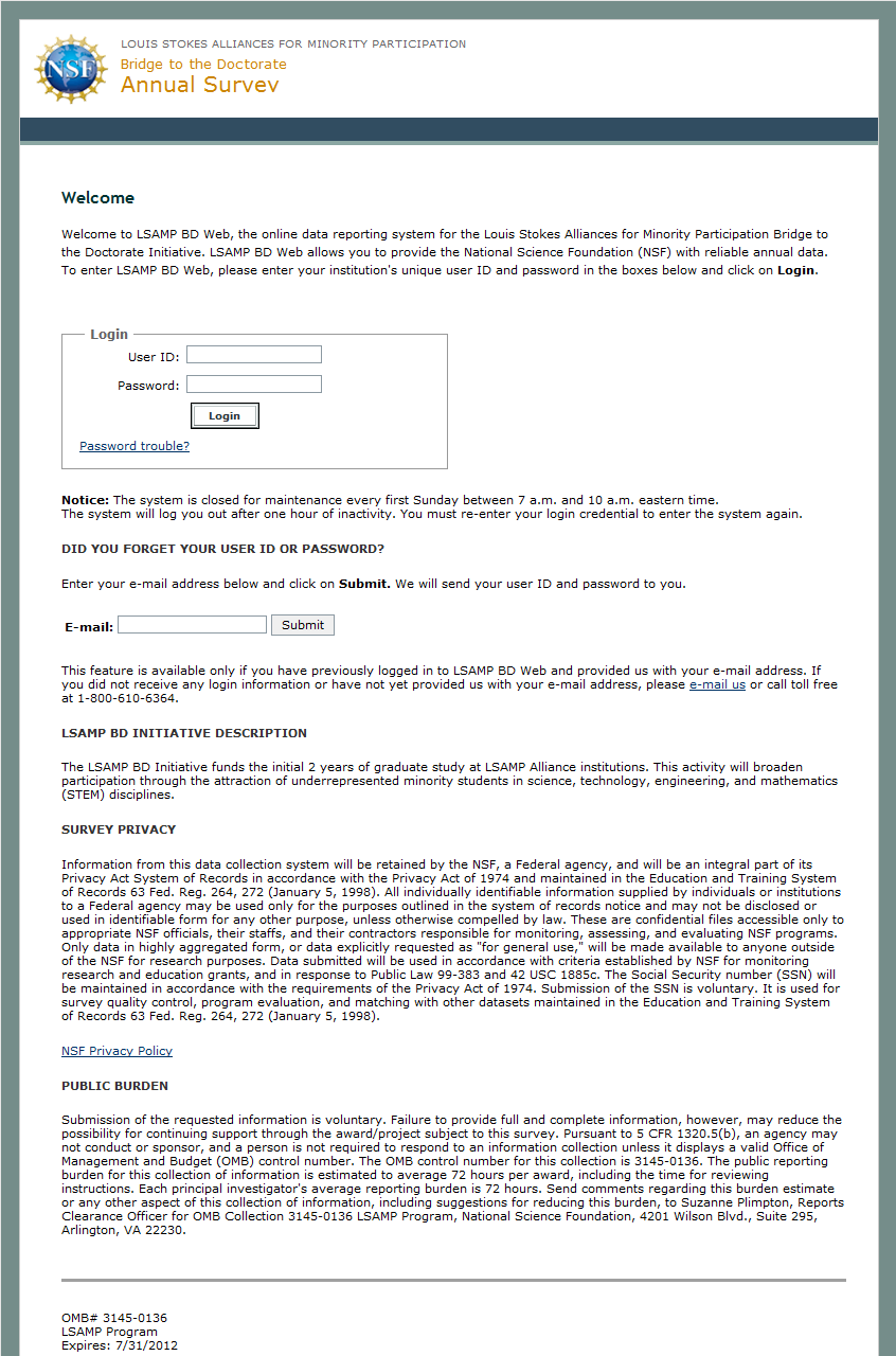 Louis Stokes Alliances for Minority Participation Bridge to the Doctorate (LSAMP-BD) Monitoring System