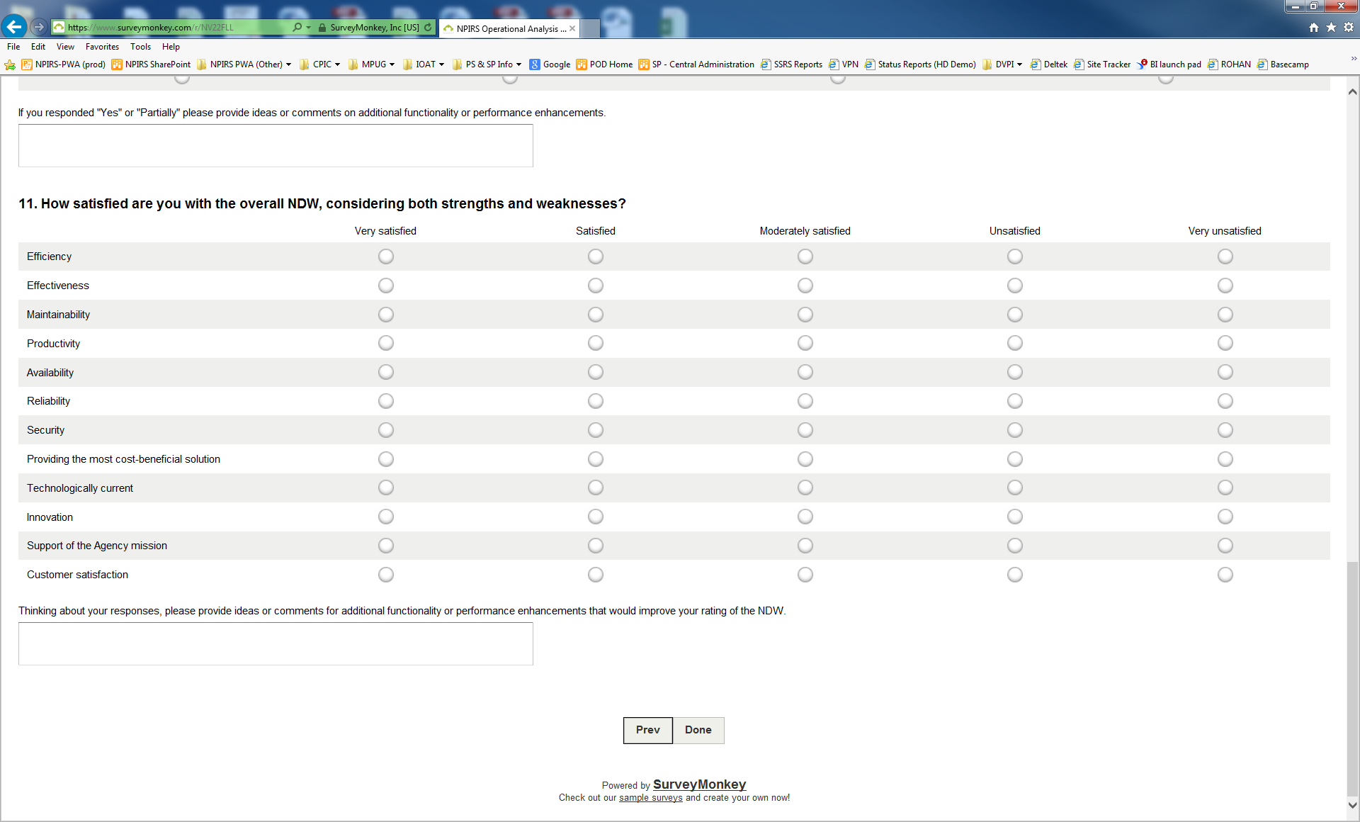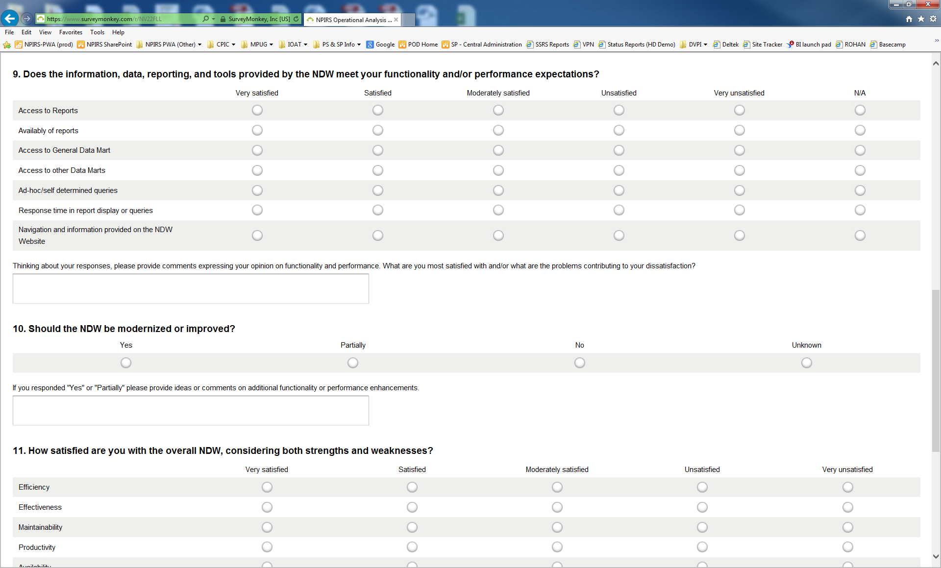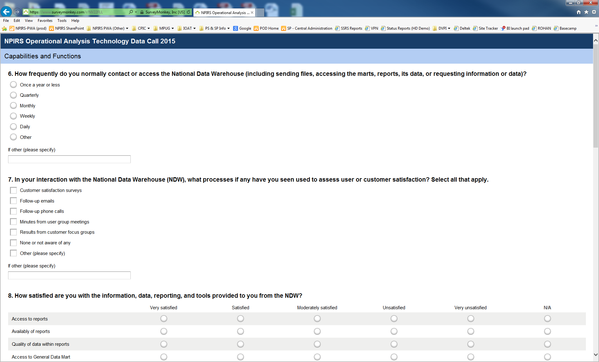 Screenshots of the Data Collection Survey as seen in the Survey Monkey Tool: