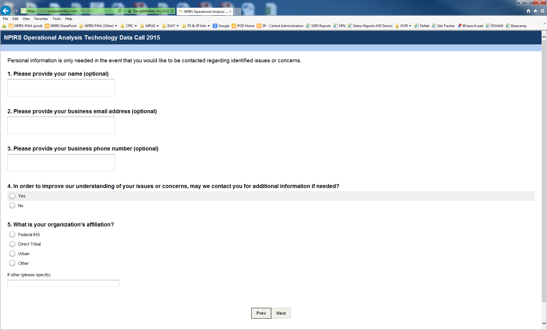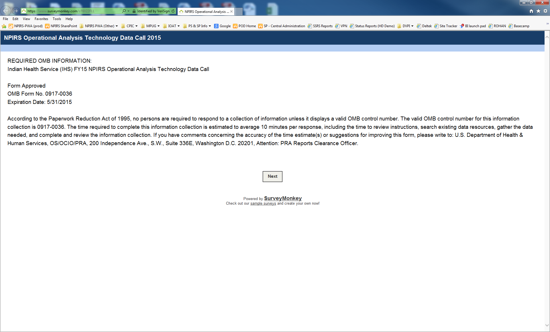 Indian Health Service, Office of Information Technology, National Patient Reporting System National Data Warehouse Data Collection Survey