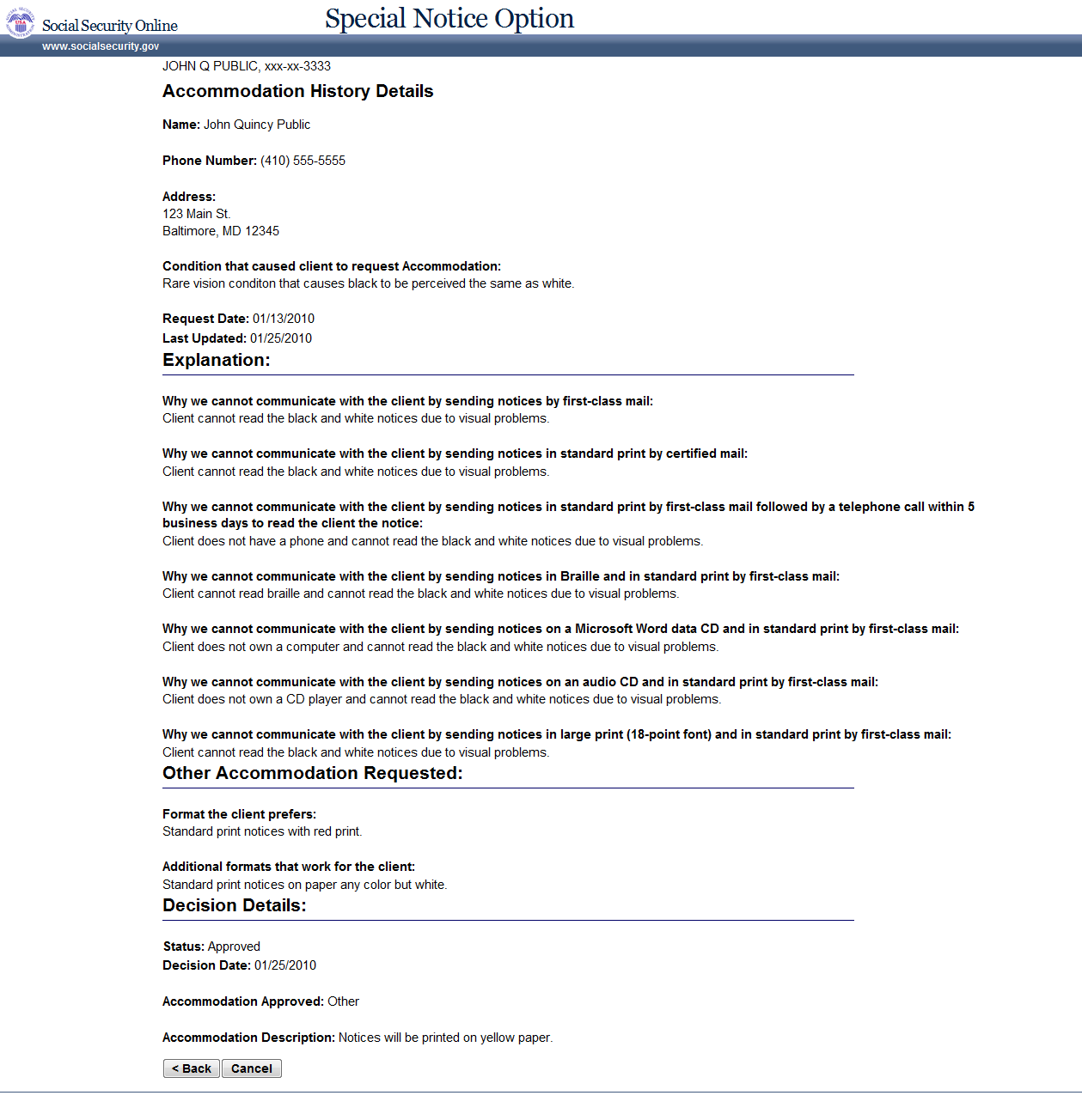 Other Accommodation Decision Details (View Mode - May 2011 Release Version) |