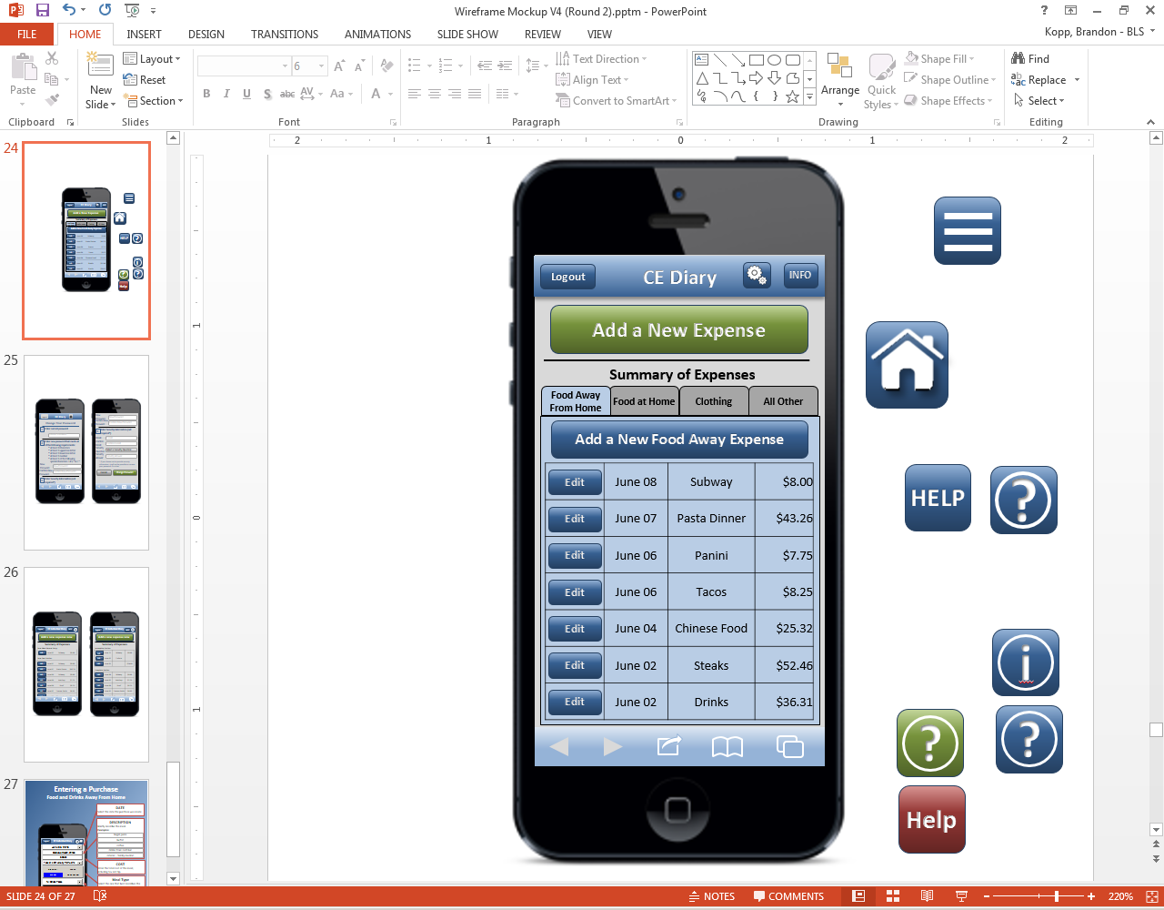 2. CHANGE MADE Need to ensure that there is “padding” at the bottom of the screens. On a couple participants’ phones the button was at the very bottom of the screen. This could put the button right next to browser or phone buttons and could result in problems with navigation. One participant who used Safari on an iPhone did accidently hit the browser button when trying to save an expense.