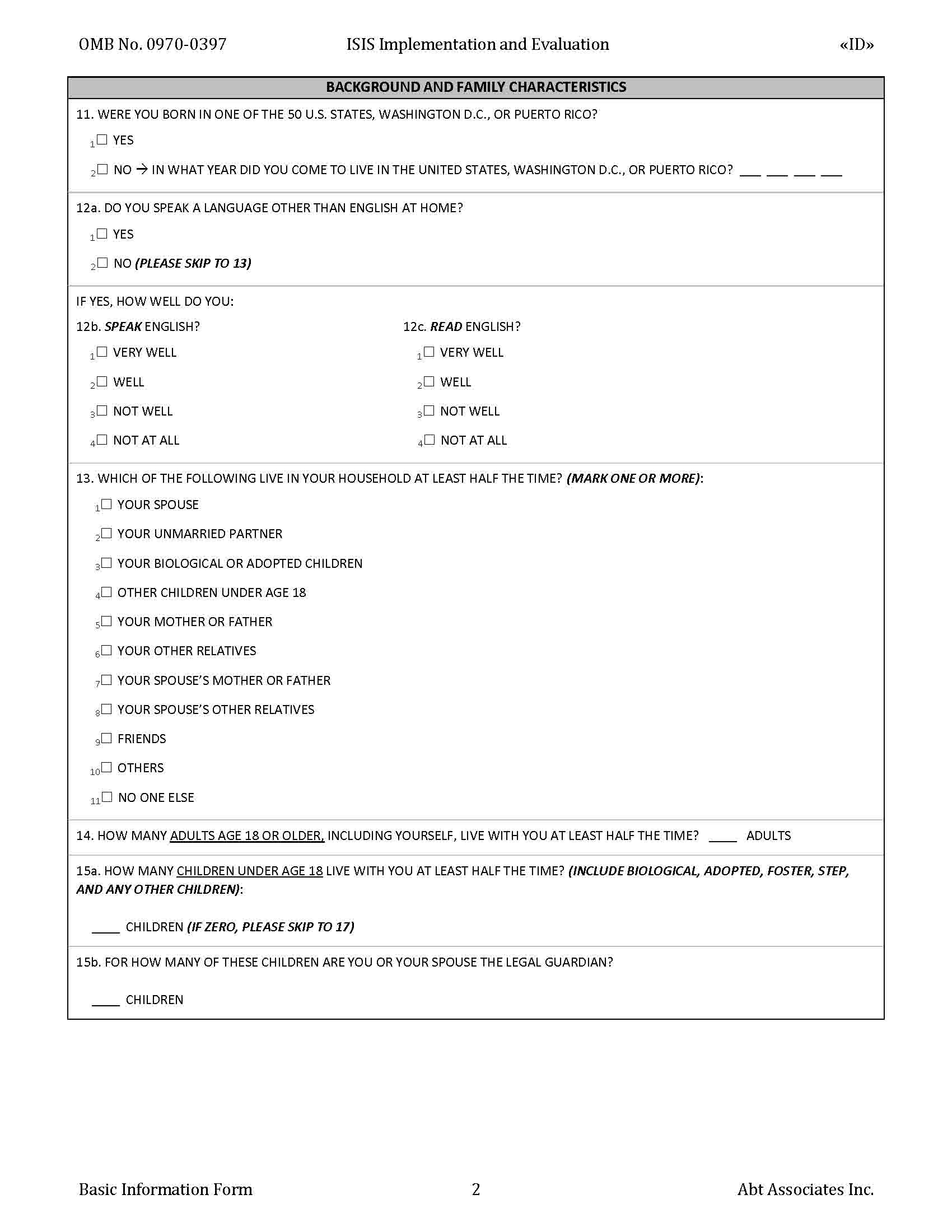 Note: The Basic Information Form (BIF) used during the baseline data collection was previously approved by OMB. The modified BIF, one of the instruments requesting clearance in this submission, includes some new questions about the participant’s children.