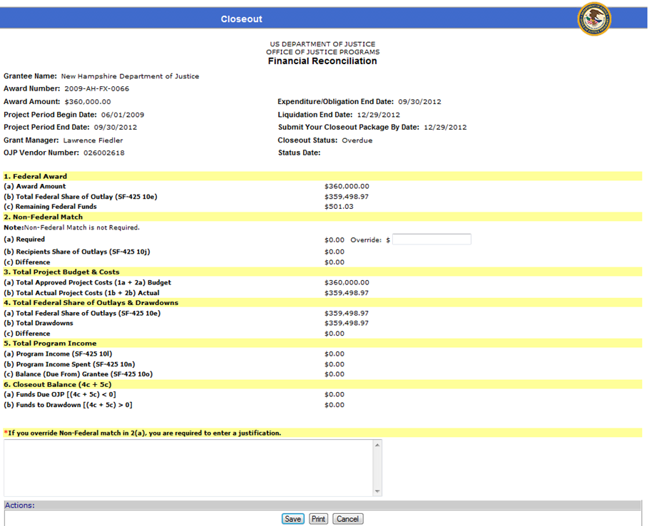 CO 2- Closeout Programmatic Requirements Certification Screen