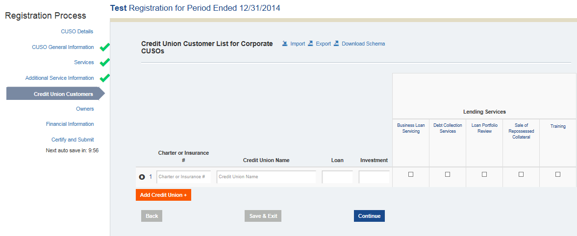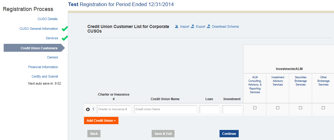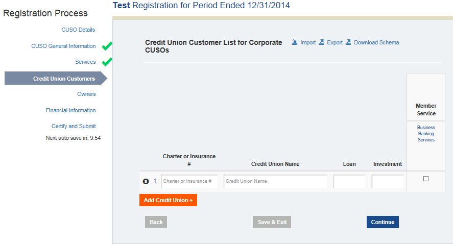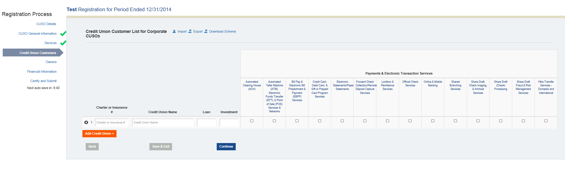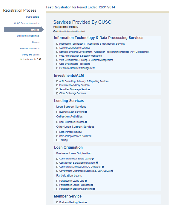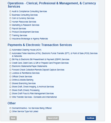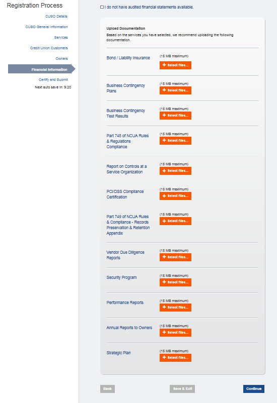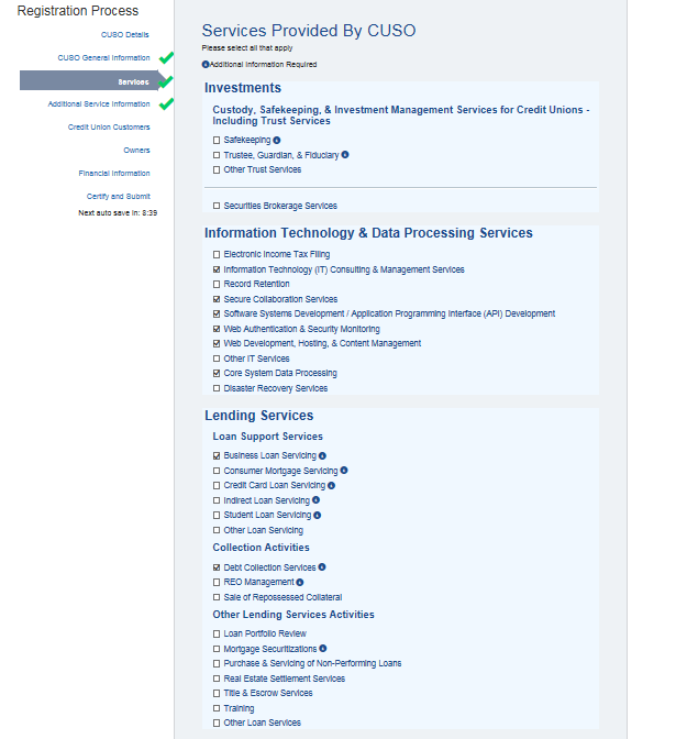 ADDITIONAL UPLOADS FOR CORPORATE CUSOs (based on services as required by NCUA Rules & Regulations Part 704)