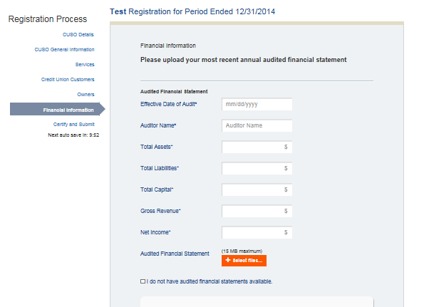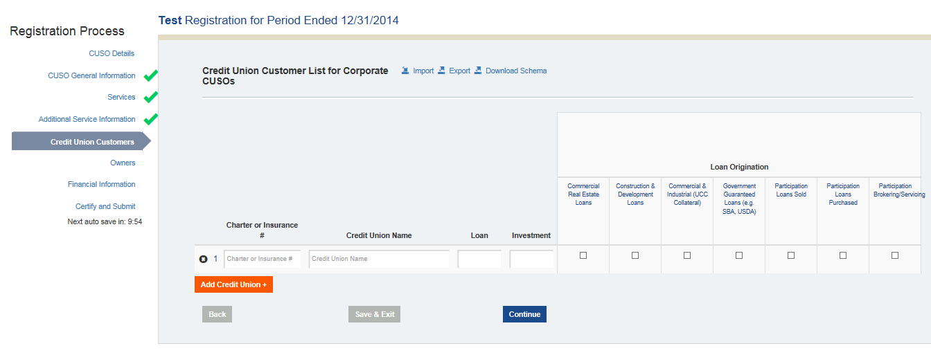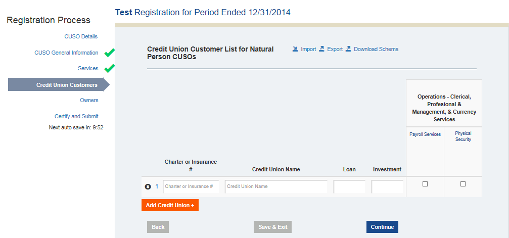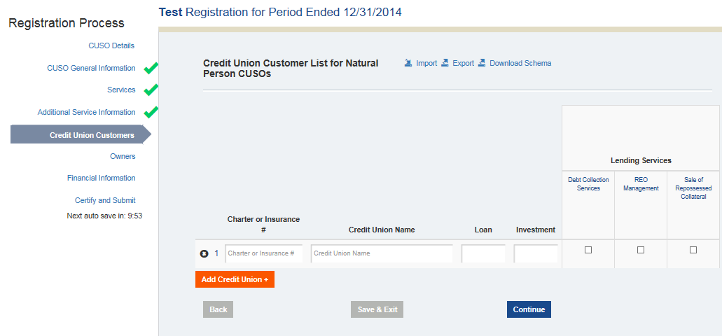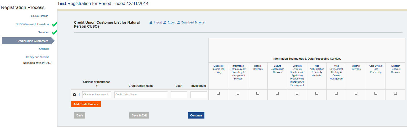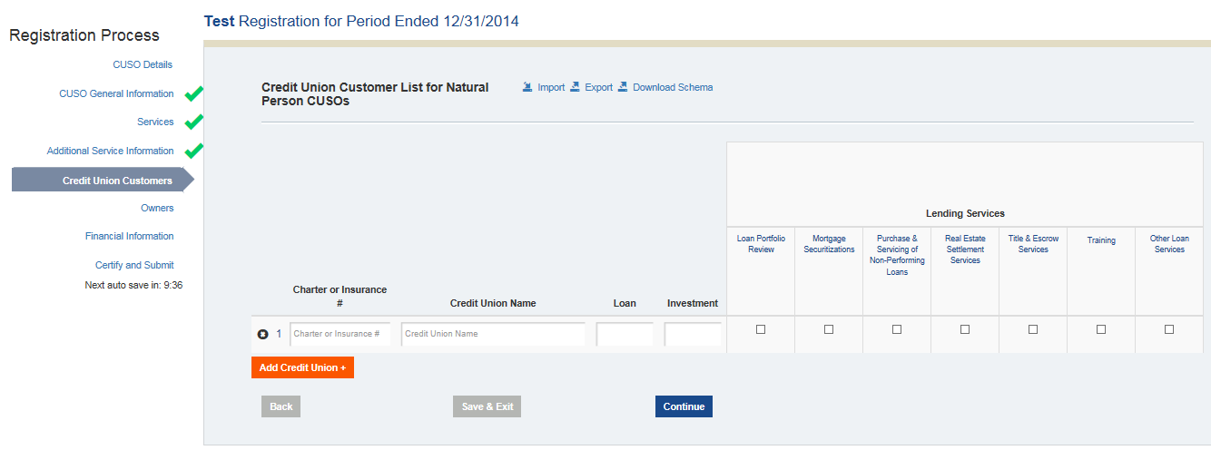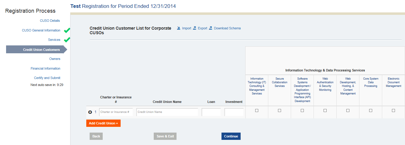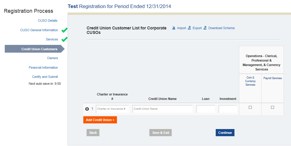 ADDITIONAL UPLOADS FOR CORPORATE CUSOs (based on services as required by NCUA Rules & Regulations Part 704)
