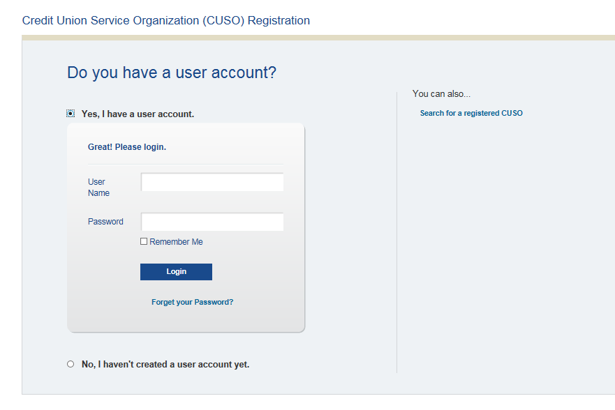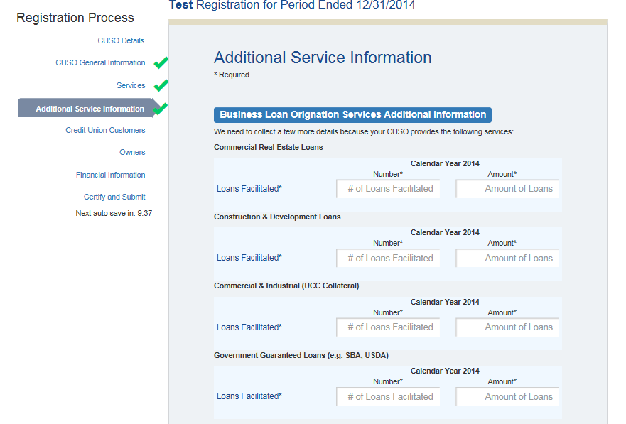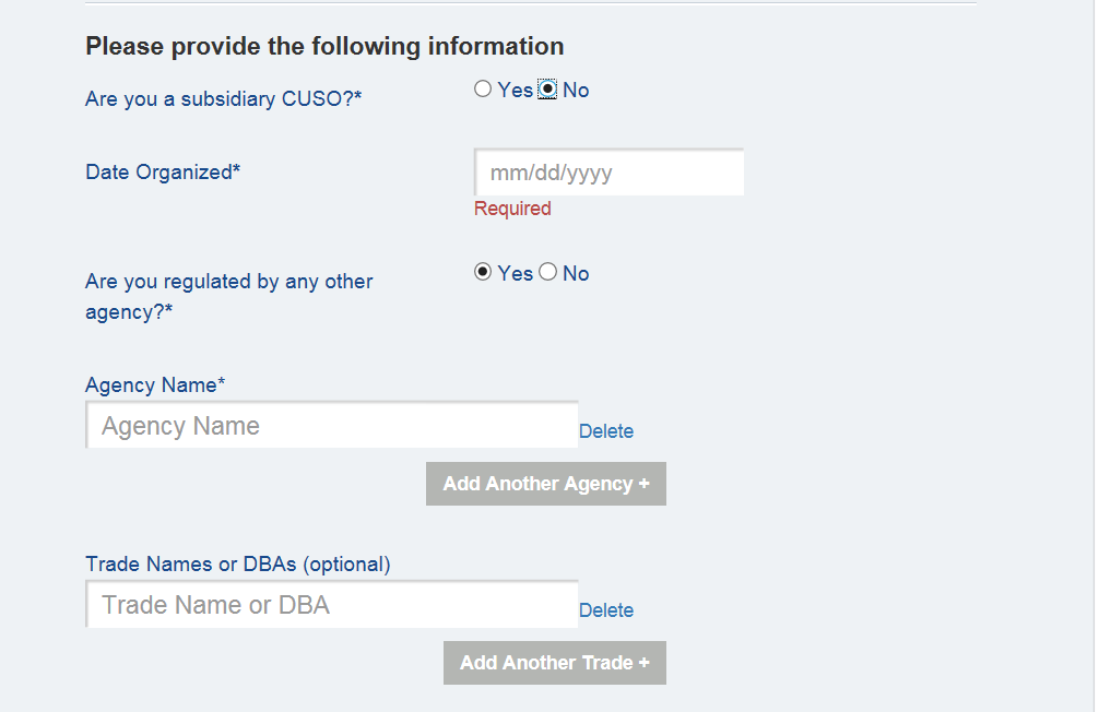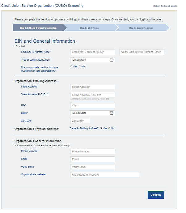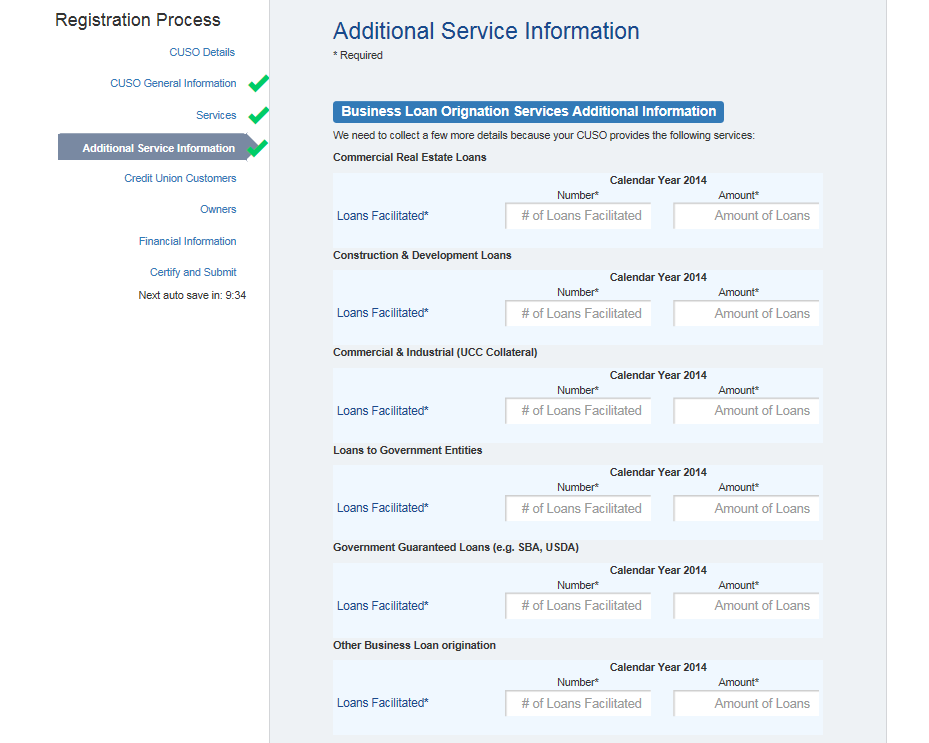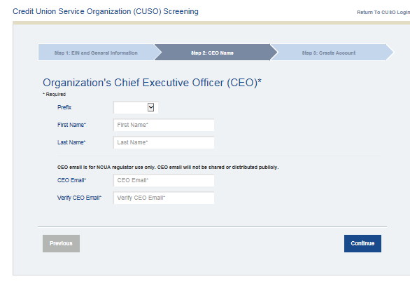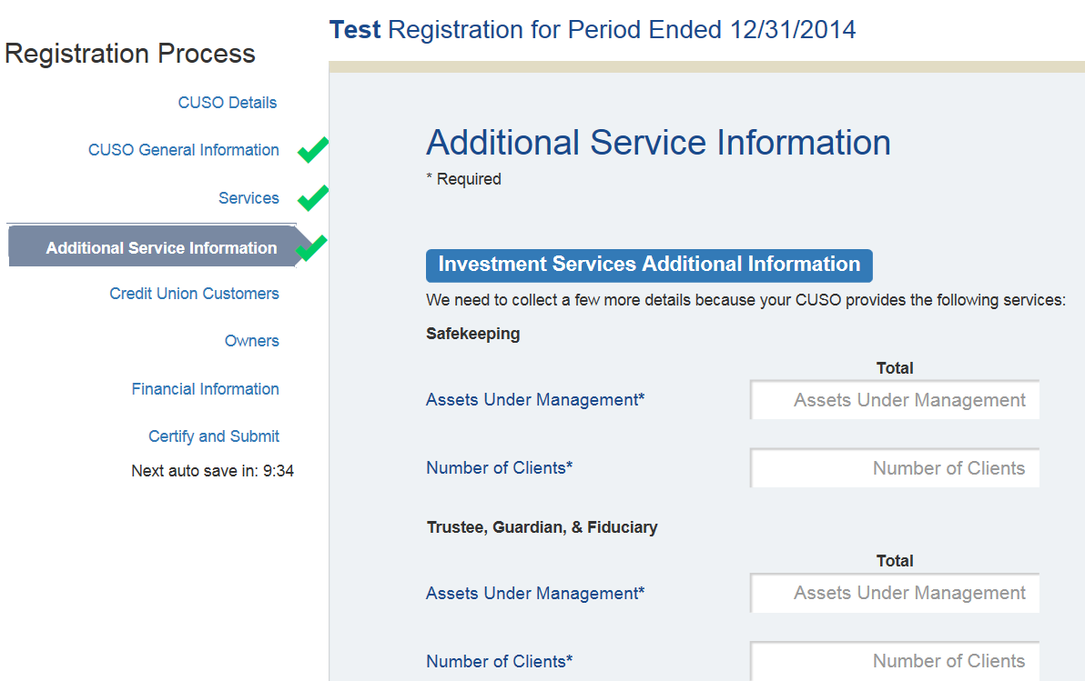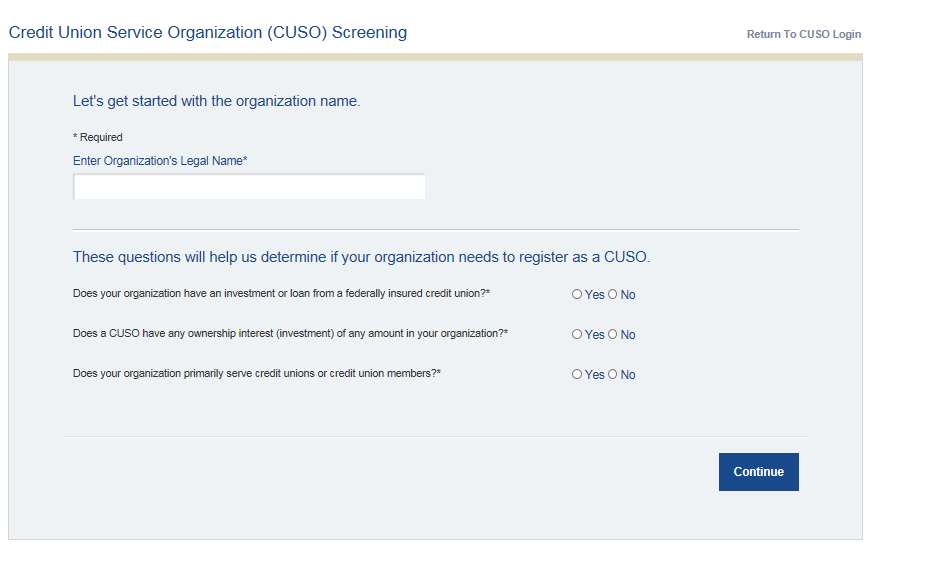 Screening Page to Initially Register CUSO- Information is carried forward to the General Tab in Registry