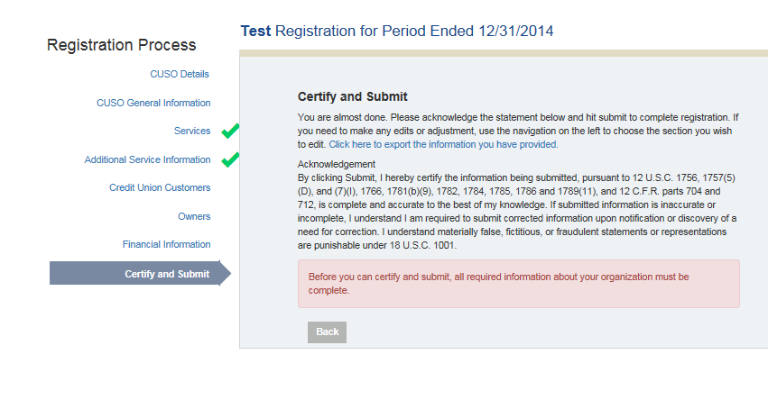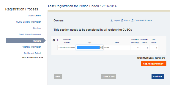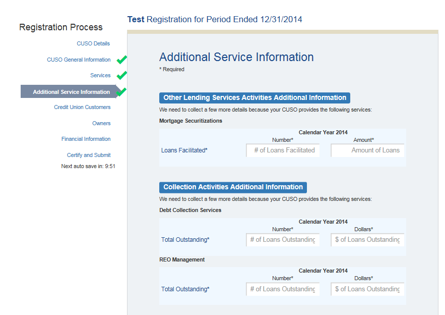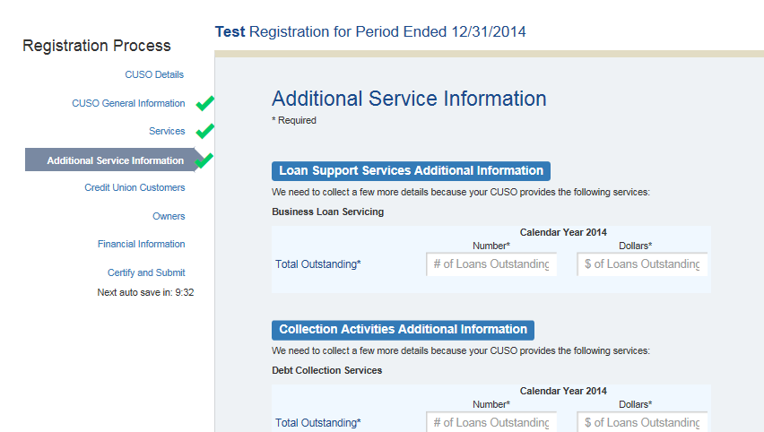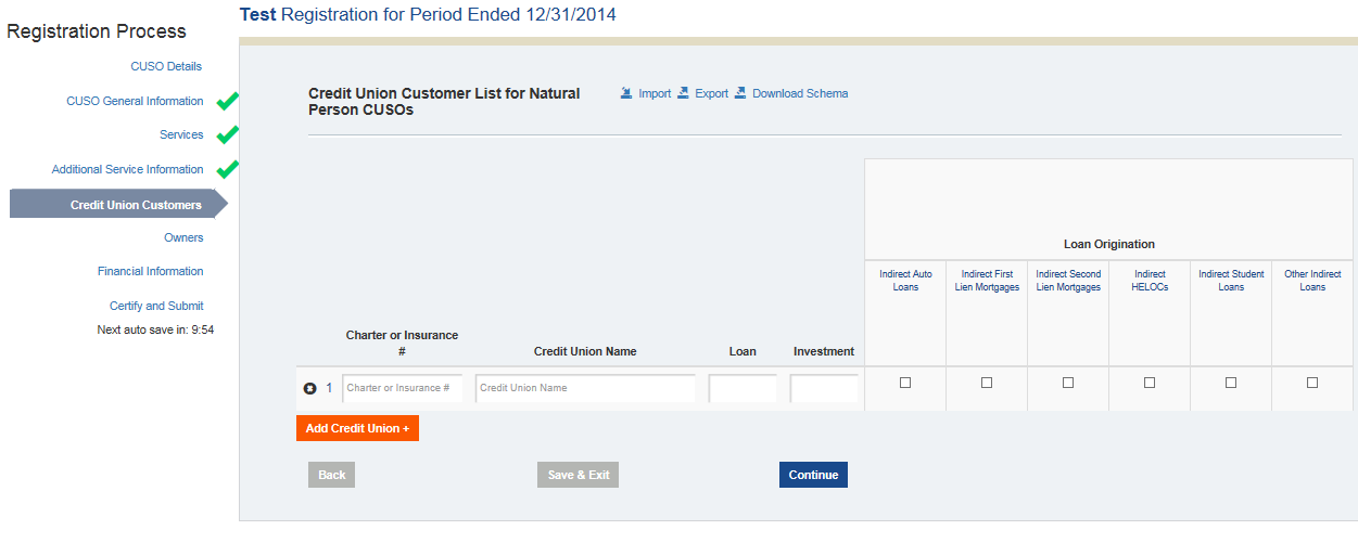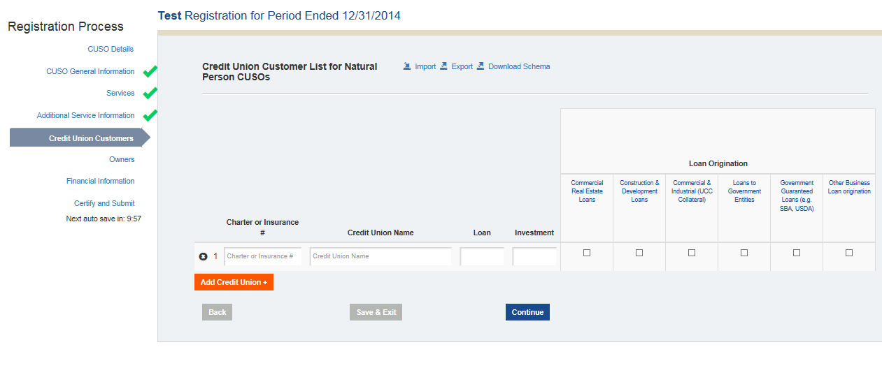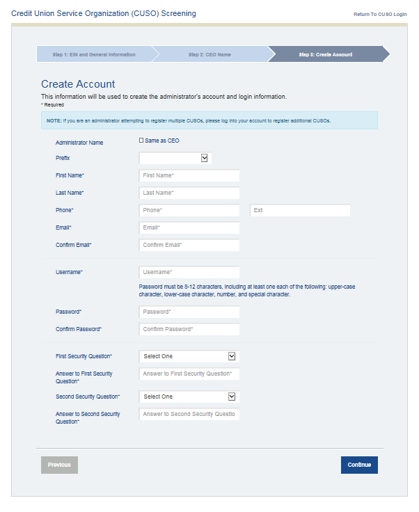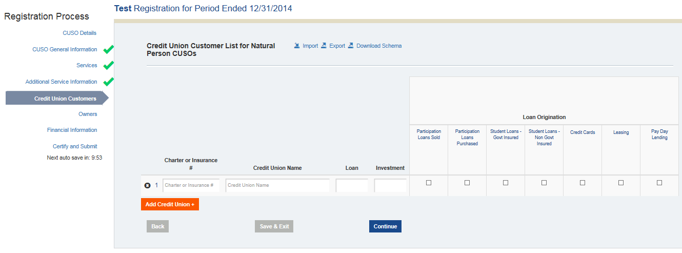 Screening Page to Initially Register CUSO- Information is carried forward to the General Tab in Registry