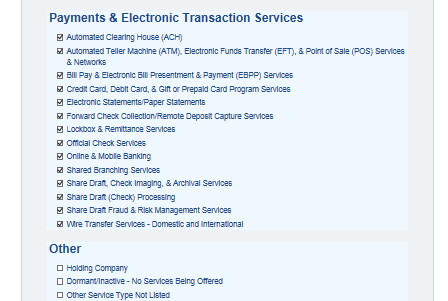Corporate CUSO Expanded Customer List- Payment & Electronic Transaction Services