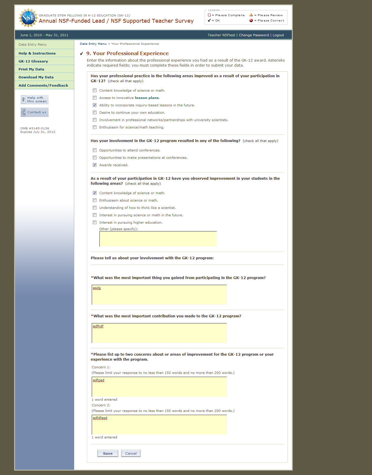 GK-12 Monitoring System Screenshots: Teacher Survey