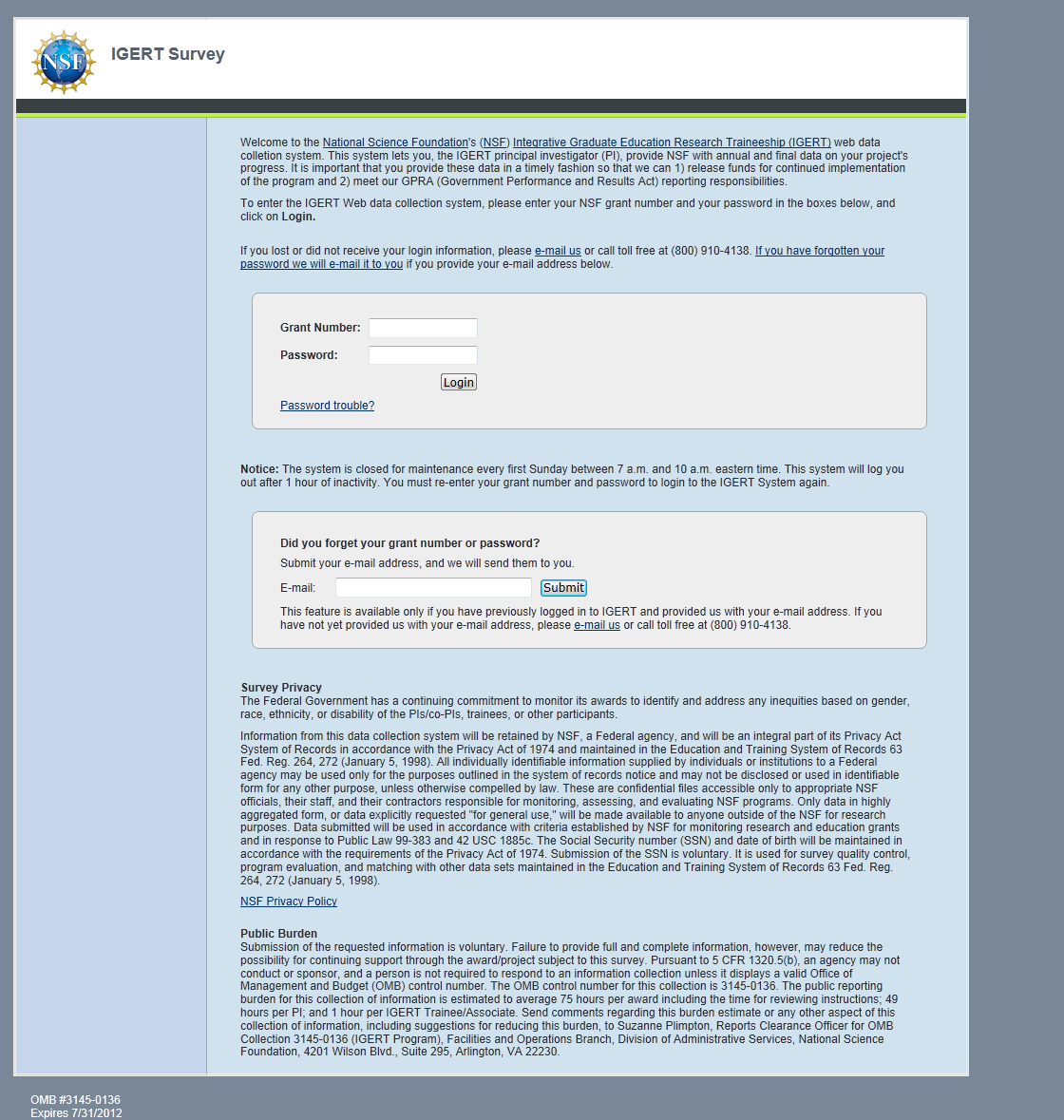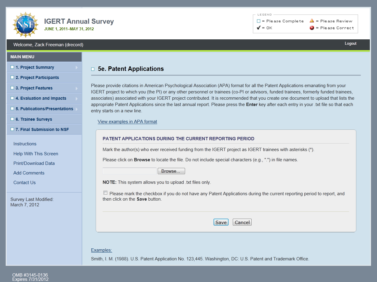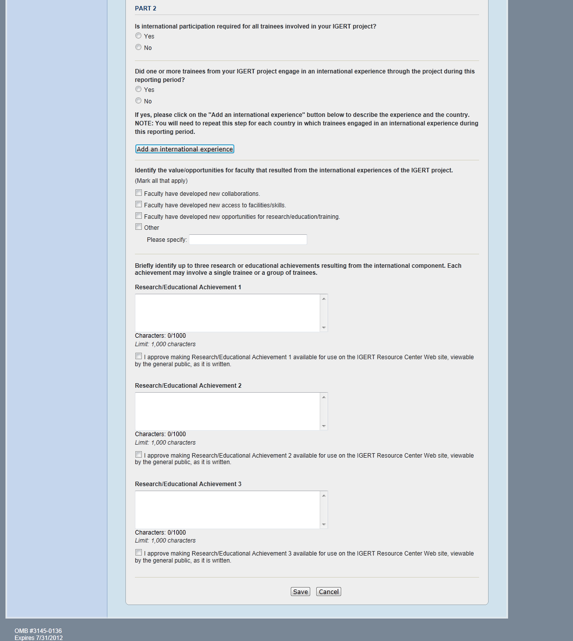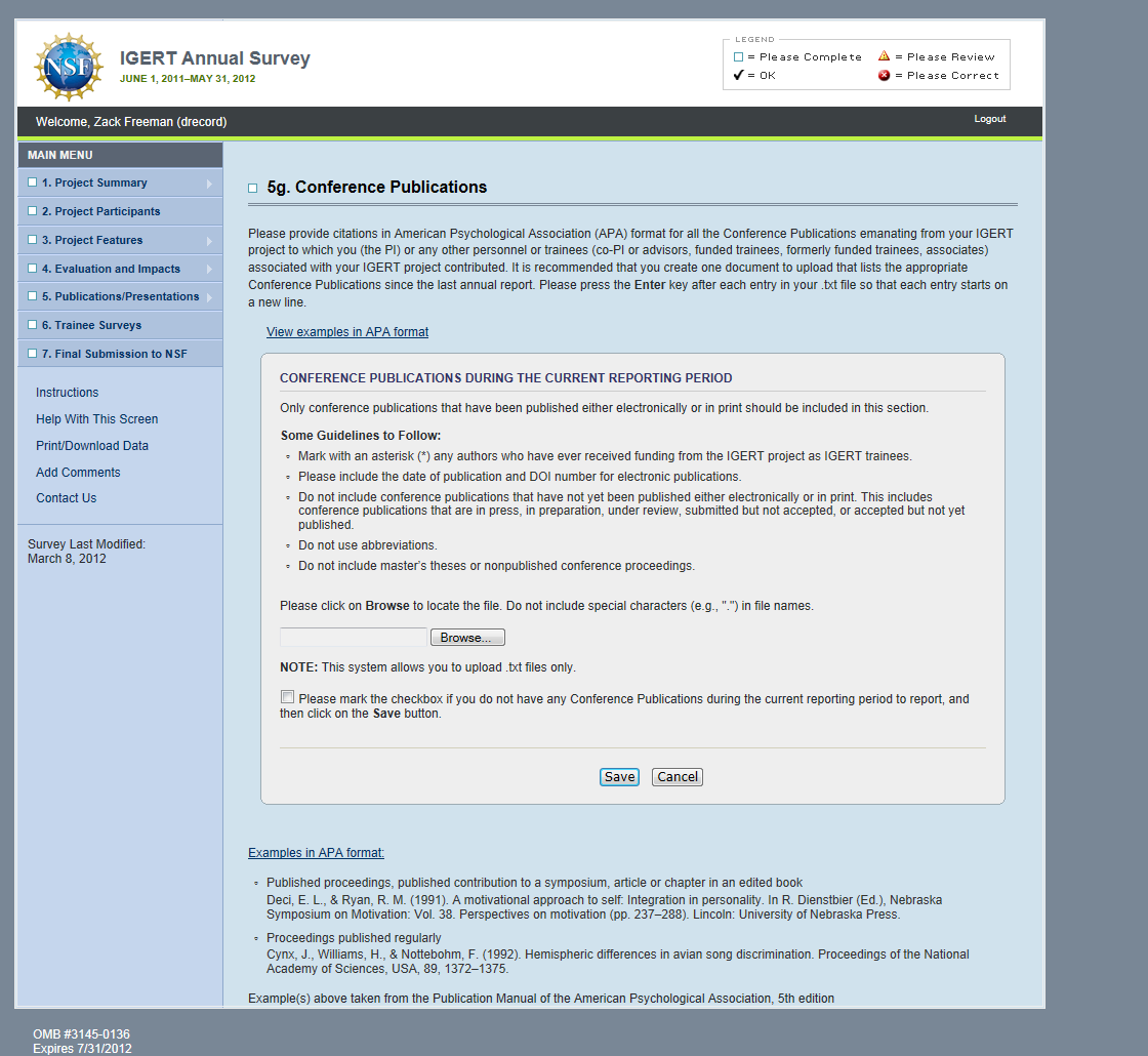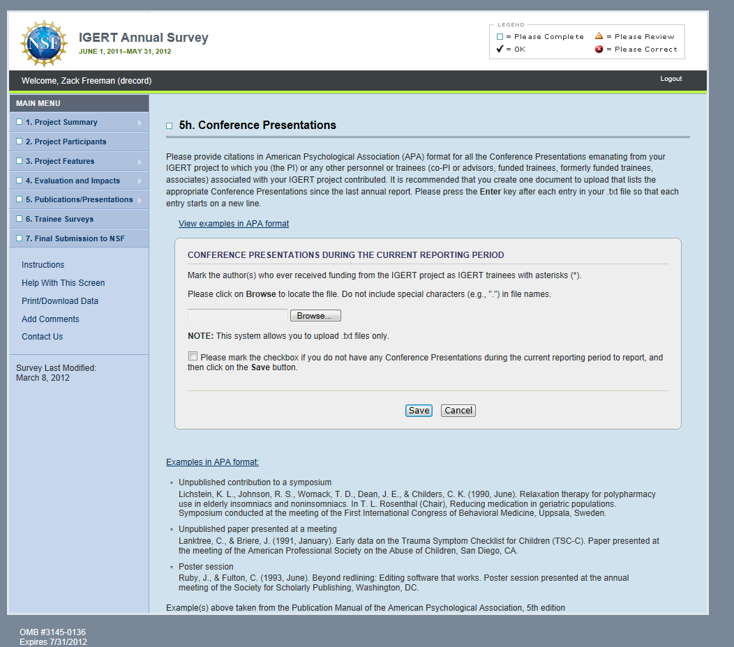 IGERT Monitoring System Screenshots: PI Survey