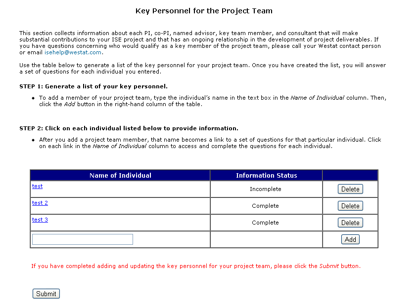 (Only projects that select “Yes” to D1 will continue to the Deliverable List screen)