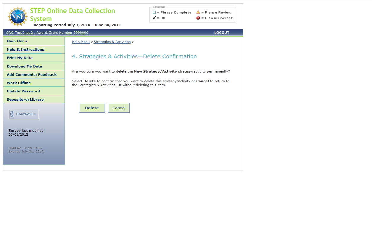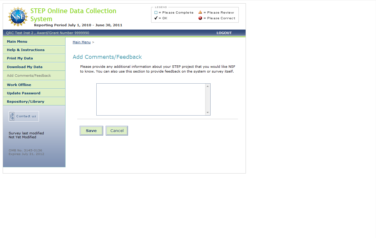 | File Title | Screenshots of the STEP Online Data Collection System: 2-Year Institutions for the Reporting Period of July 1, 2009, to June 30, |