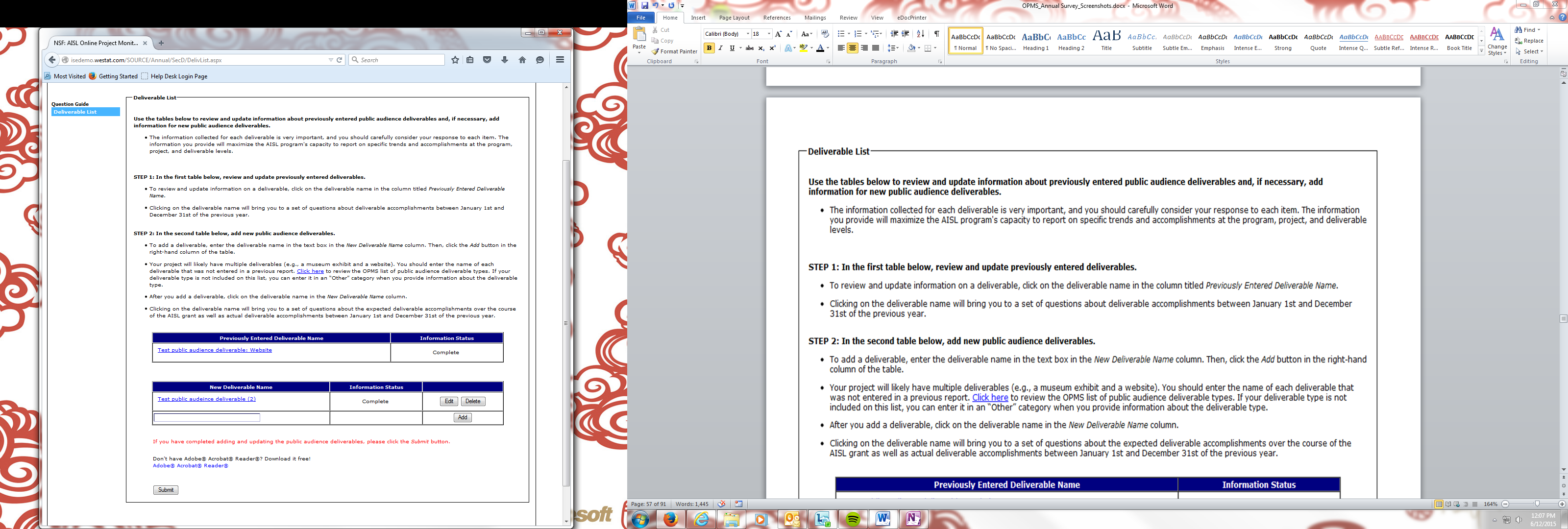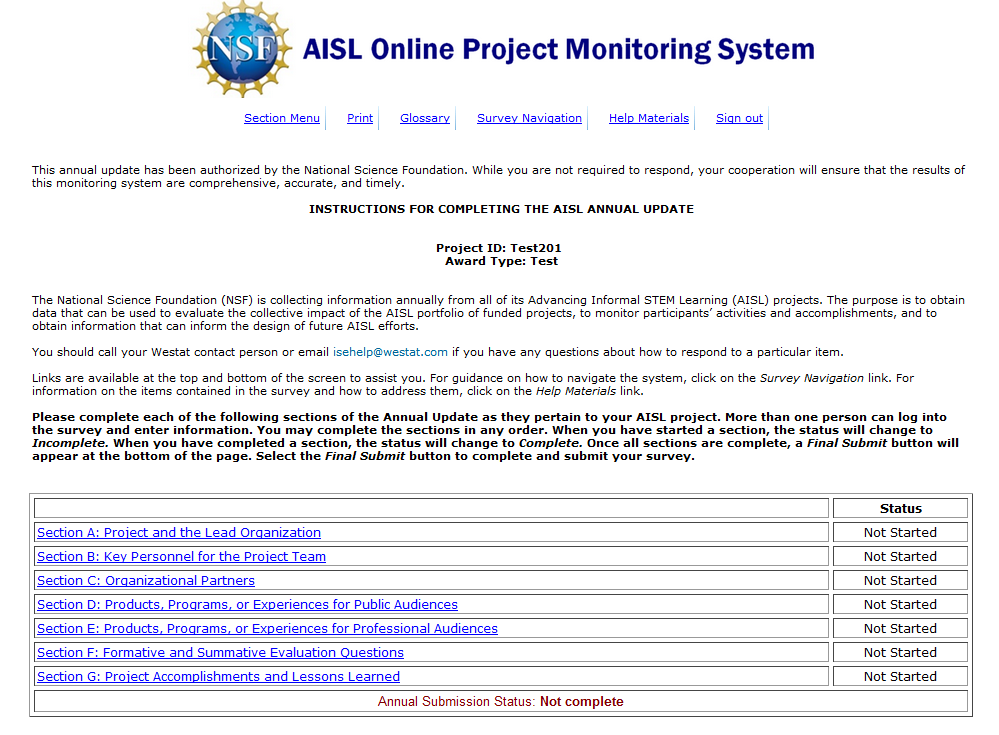 | File Title | Annual Survey Screenshots for: The NSF Advancing Informal STEM Learning (AISL) Program’s Online Project Monitoring System (OPMS) |