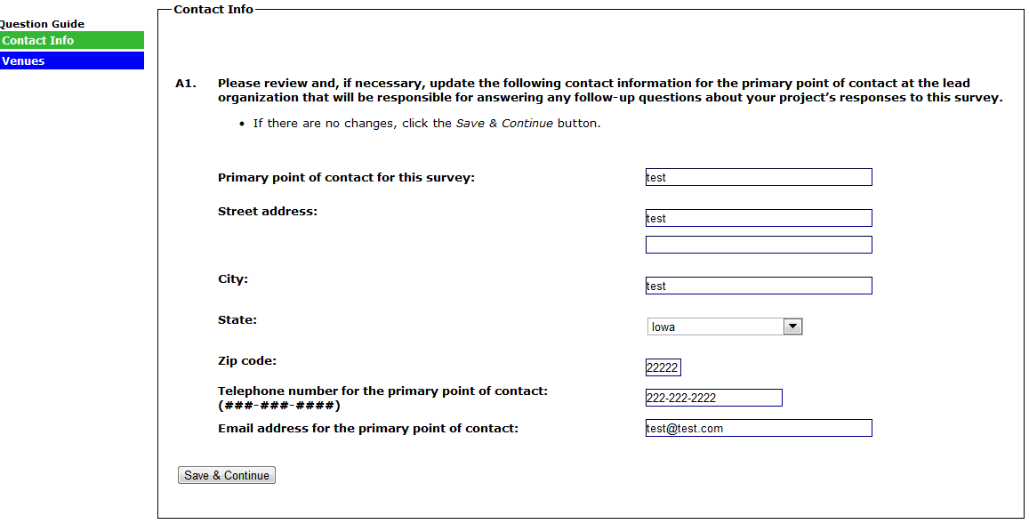 (SELECTING “SAVE & CONTINUE” WILL RETURN YOU TO THE KEY PERSONNEL MAIN PAGE)