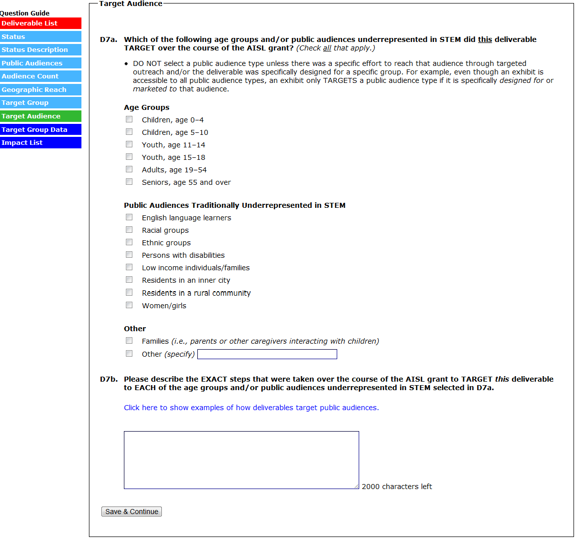 (SELECTING “SAVE & CONTINUE” SUBMITS THE DELIVERABLE AND RETURNS YOU TO THE DELIVERABLE LIST PAGE)