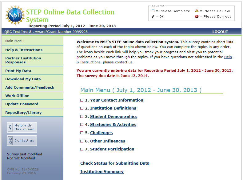 | File Title | Screenshots of the STEP Online Data Collection System: 2-Year Institutions for the Reporting Period of July 1, 2009, to June 30, |