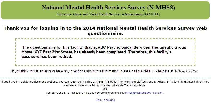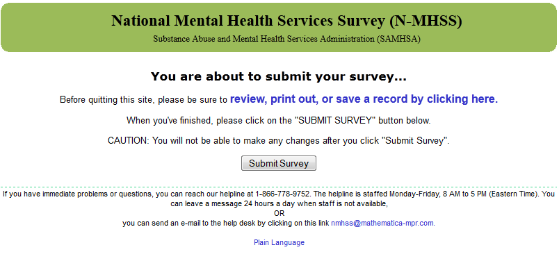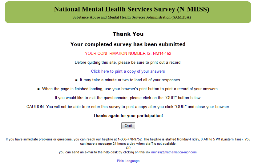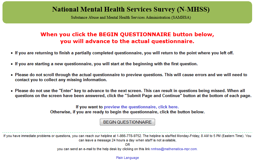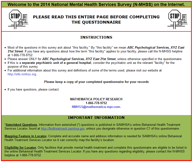 2014 N-MHSS Web Screens for Online Questionnaire