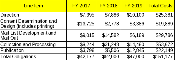 The initial mailing of questionnaires for the 50 states and Puerto Rico will occur in December 2017, with a due date of February 5, 2018. Publication of final reports (Volume I, see below) will be in February 2019.