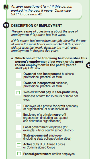 CLASS OF WORKER: Q41, PAGES 11, 15, 19
