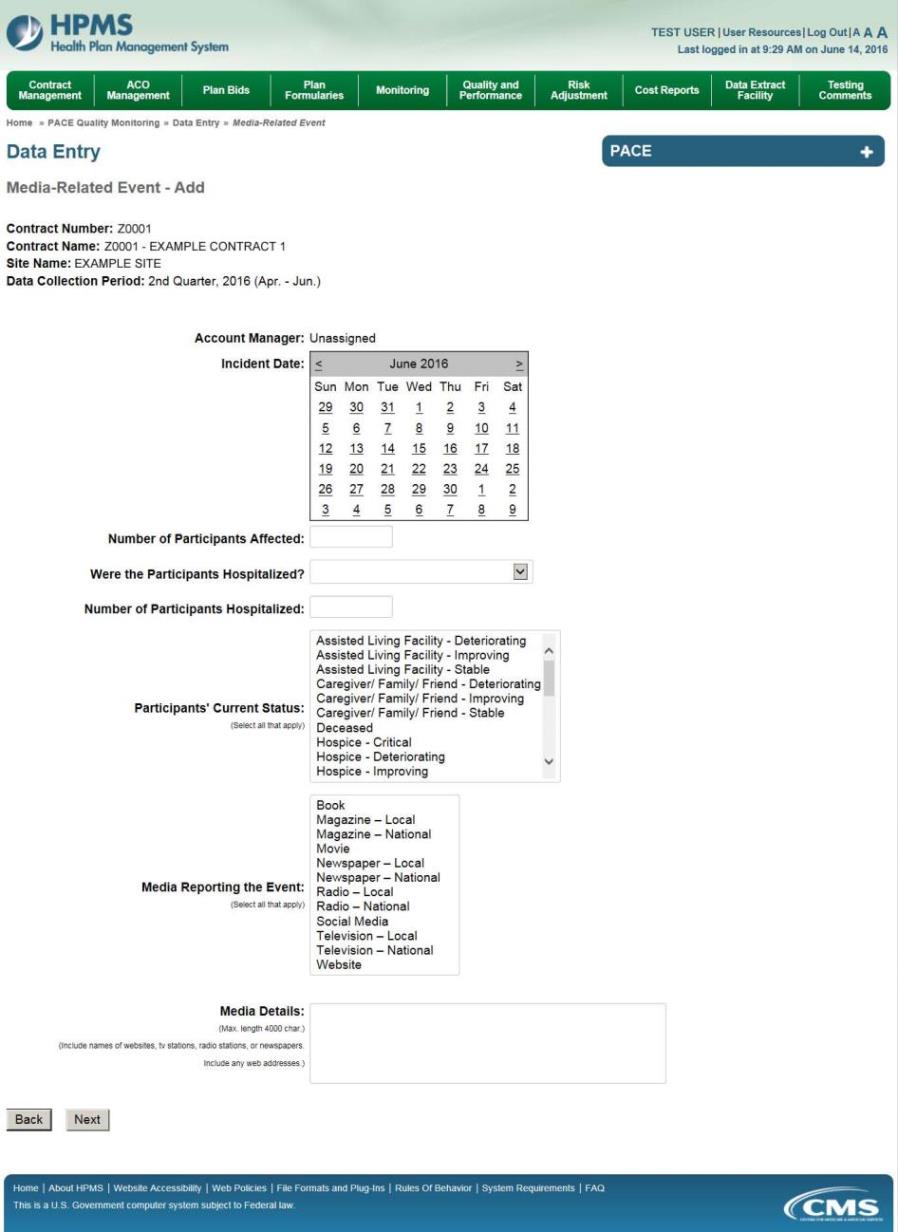 The PACE Quality Reporting module enables users to report Media-Related Event data. Refer to PACE Guidance for operational guidance on reporting Media-Related Event data.