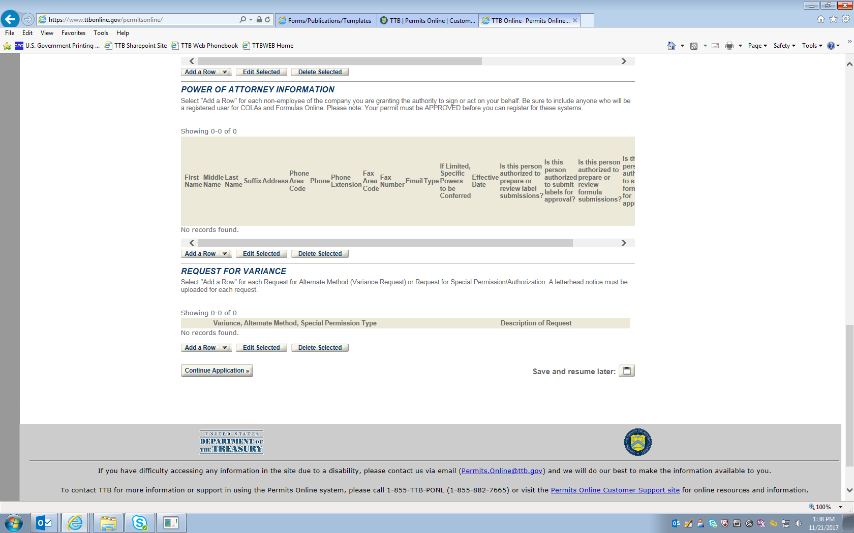 [The screens that follow allow the user to review the submitted information and then submit the completed application to TTB.]