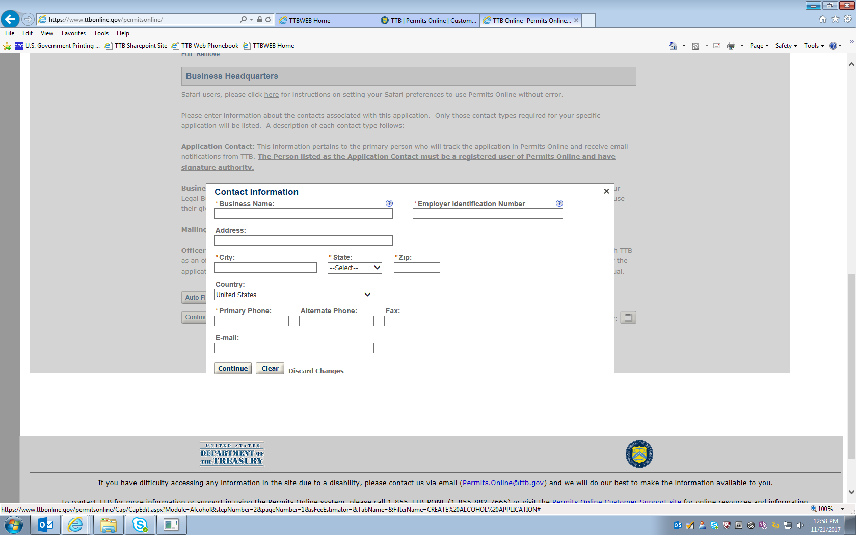 [The screens that follow allow the user to review the submitted information and then submit the completed application to TTB.]