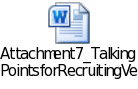 In addition, FDA requests a change to the document association for one of the information collections in this ICR as posted in ROCIS. The correct document for the “Venue Owners Venue Recruitment” IC is “Attachment7_TalkingPointsforRecruitingVenues”(attached). It should replace the currently associated document, “Attachment8_ScriptforRecruitingInterceptParticipants.”