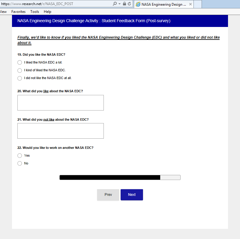4-NASA Education SCIS - STUDENT FOLLOW-UP INSTRUMENT- EDC Student Screenshots