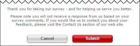 | Thank you for taking our survey - and for helping us serve you better. We appreciate your input! | Gracias por participar en nuestra encuesta y por ayudarnos a prestarte un mejor servicio. ¡Agradecemos tus comentarios! |
