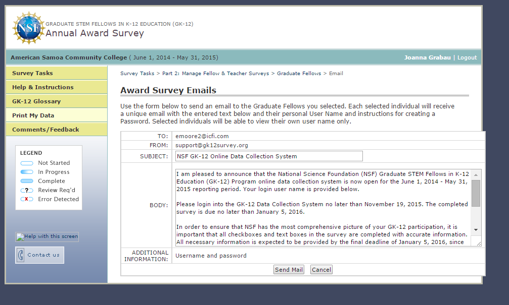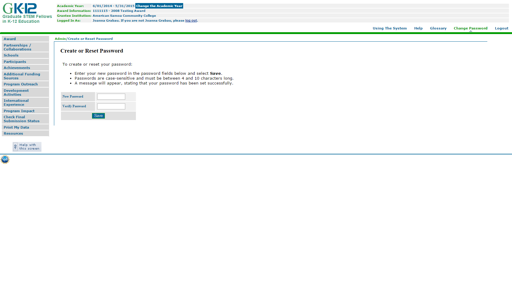 Graduate STEM Fellows in K-12 Education (GK-12) Monitoring System - Award Survey
