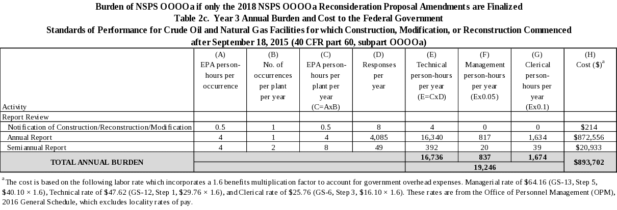 b These burden estimates will be updated when the NSPS OOOOa EO 13783 Review Amendments are finalized to reflect any changes made between proposal and promulgation, as well as to reflect the final rule changes resulting from the NSPS OOOOa reconsideration.