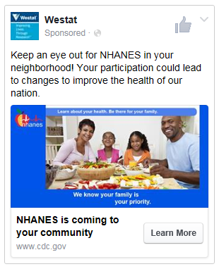 Note: This new hand card is for the new questions related to the NHANES social media pilot. It will have screen shots of the seven still shorts and three videos being used in the social media pilot. The materials have not yet been developed, so these are place holders for the anticipated products.