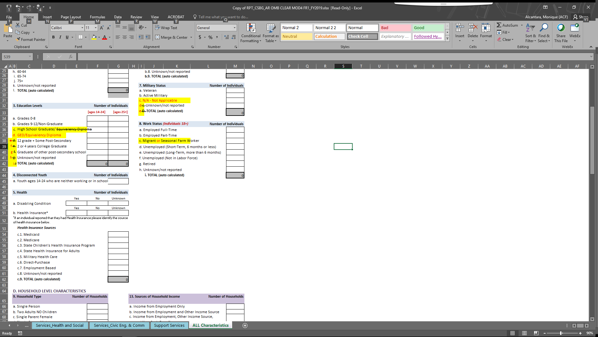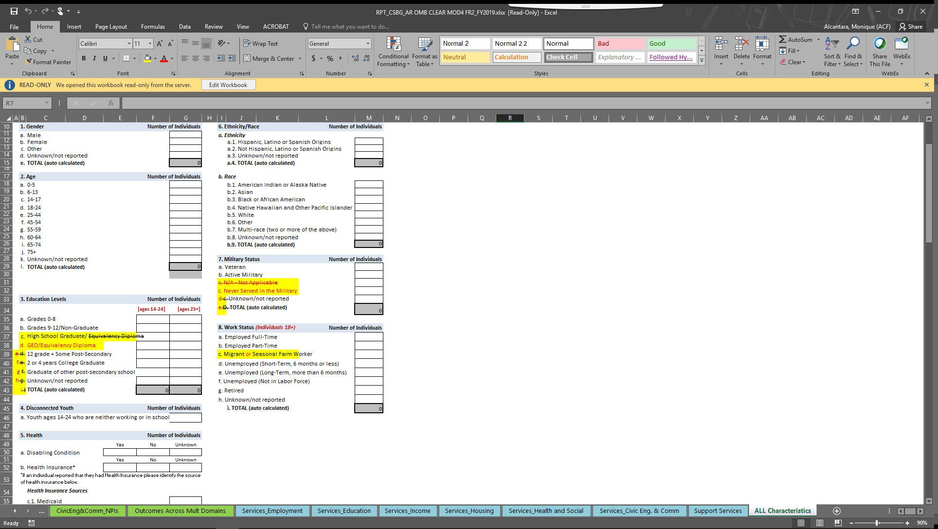 Update language in Section E&F of the All Characteristics Report to read “Number of Individuals who may or may not be included in the totals above”.